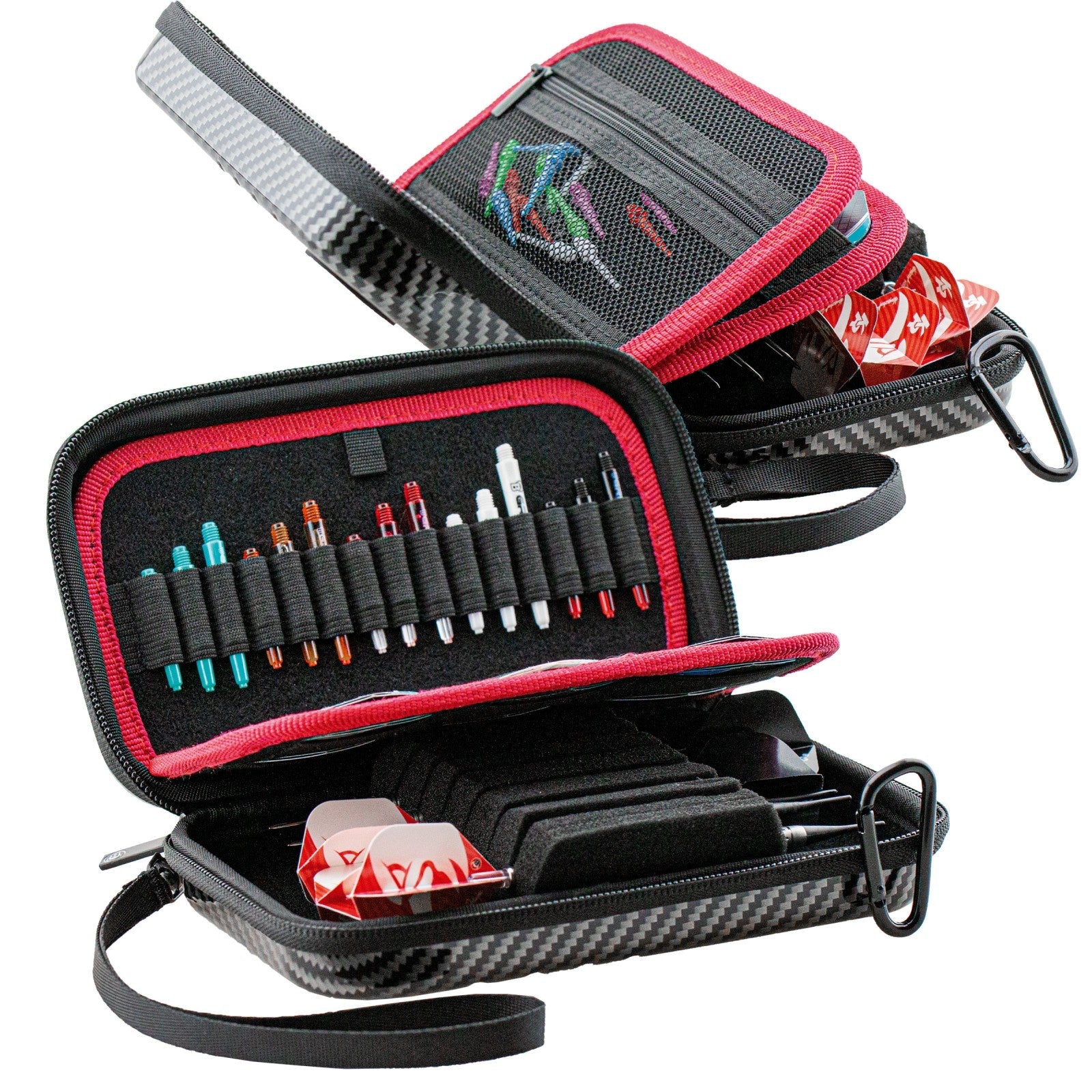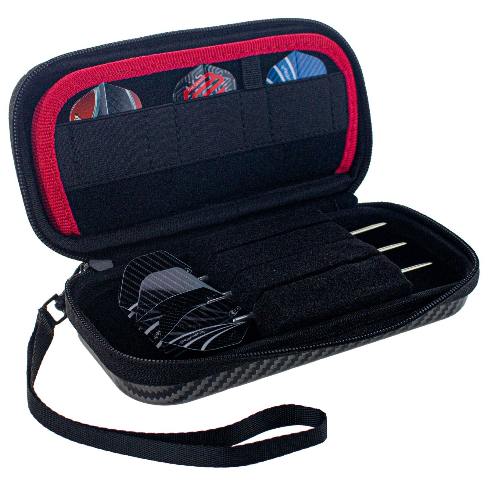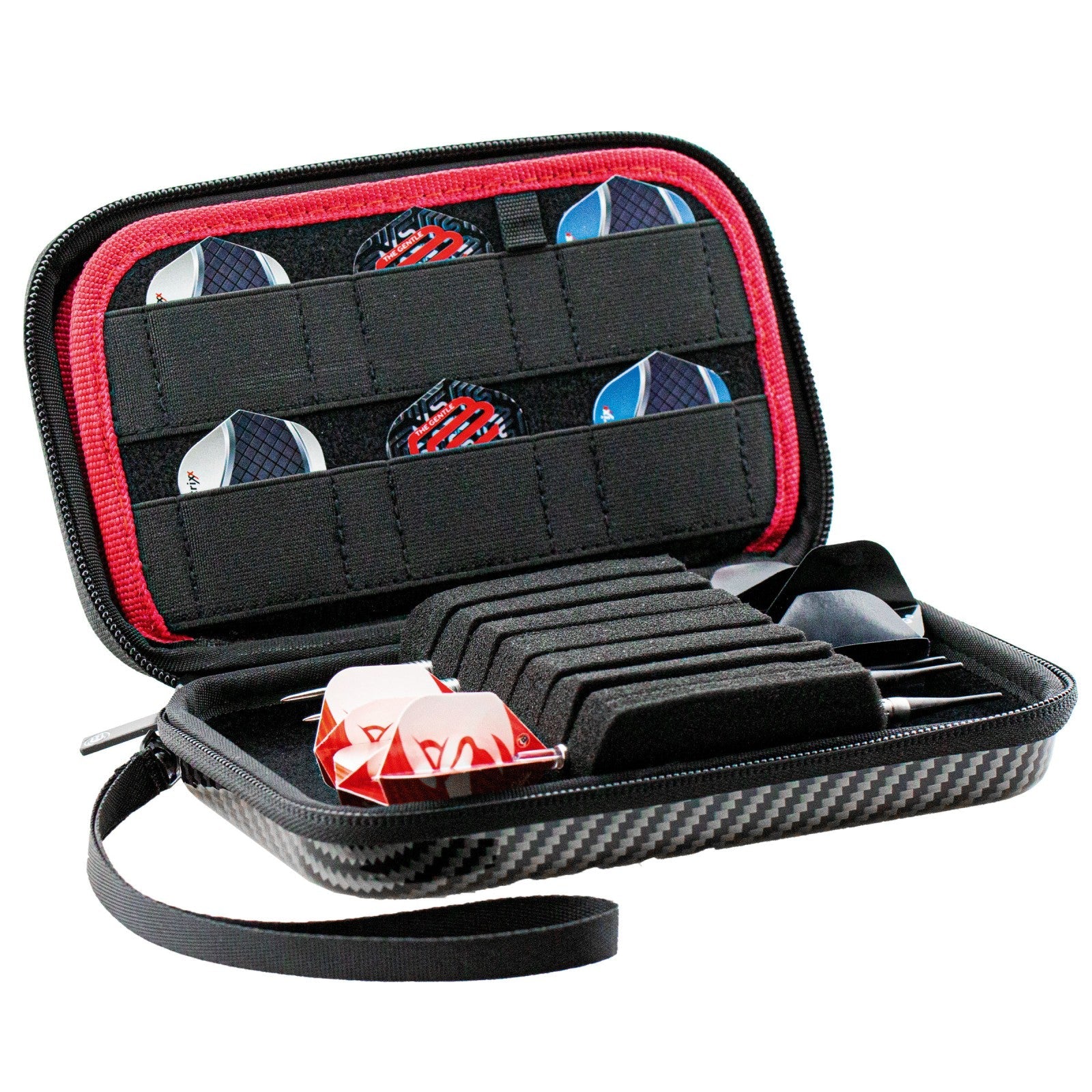 Orbis HS Carbongrey S Das BULL'S Orbis im neuen Carbon Design. Die extrem stabile Darttasche aus ABS ist in S und XL verfügbar. Die Größe S kommt in der Maße 190 x 80 x 50 mm und beinhaltet eine Schaumstoffhalterung für ein komplettes Dart Set und zwei Innenseiten für sechs Sätze Flights. Eine Seite besitzt Halterungen für 12 Schäfte und auf der anderen Seite befindet sich eine verschließbare Netztasche für Soft-Tips & Zubehör.