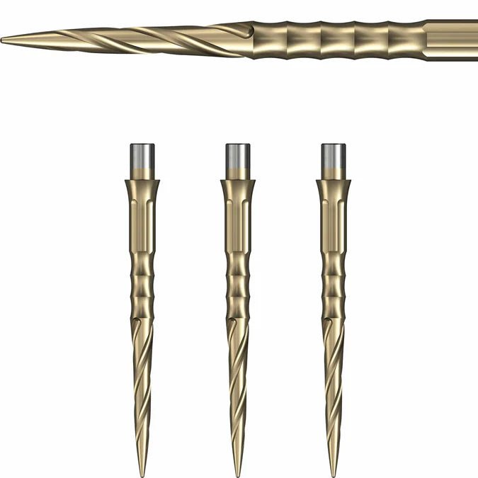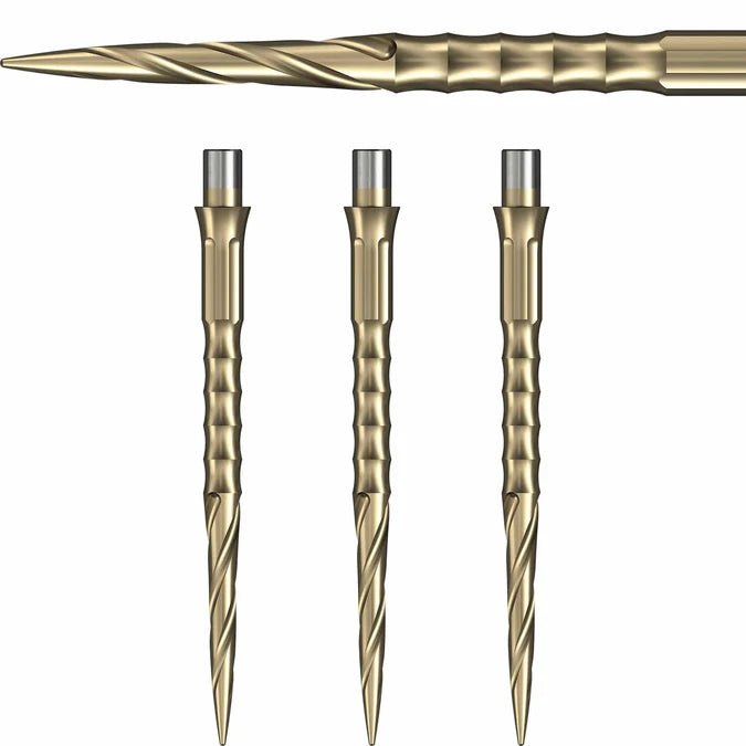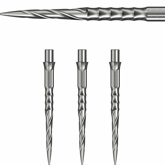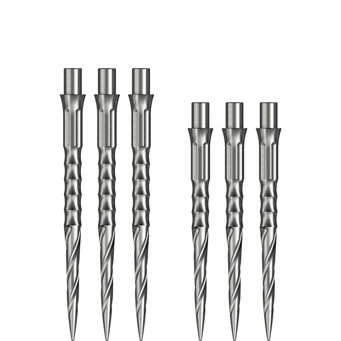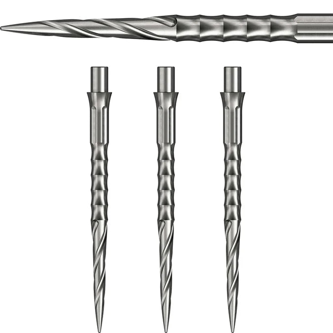 Dieses einzigartige Steeldartspitzensystem wurde entwickelt, um einen einfachen Austausch von Steeldartspitzen mit seinem Konzept des Hülsendesigns zu ermöglichen. Setzen Sie einfach die Spigots (Gewindeeinsätze) in Ihre Darts, und ersetzen Sie dann die Steeldartspitzen in Sekunden mit dem einfach zu bedienen EVO Repoint Werkzeug (separat erhältlich). Einfacher kann das Ersetzen von Steeldartspitzen nicht sein.