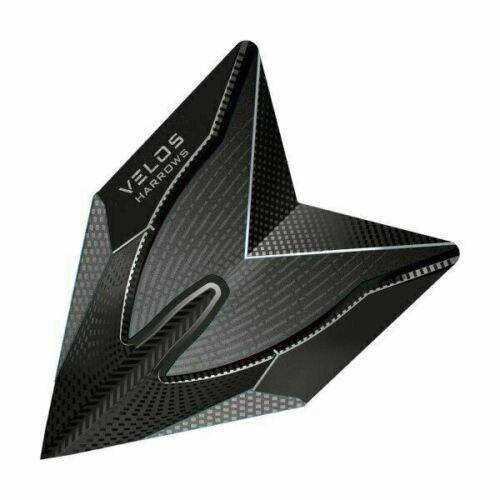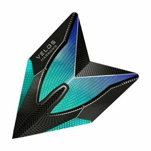 Harrows Velos Flights haben die gleiche Fläche wie normale Standard Flights. Die spitzer zulaufenden Flights und die länger hinausgezogene Flightform bringen mehr Geschwindigkeit bei hoher Stabilität. Die geringere Spannweite ermöglicht eine engere Platzierung der Darts im Board.