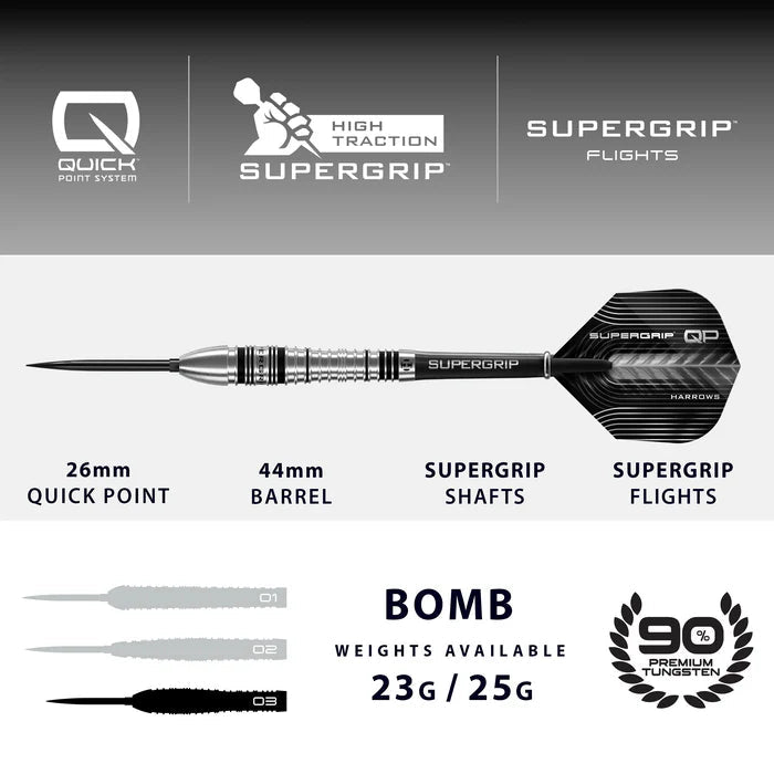 Harrows Supergrip Bomb 90% Quick Point Steeldarts 23g, 25g