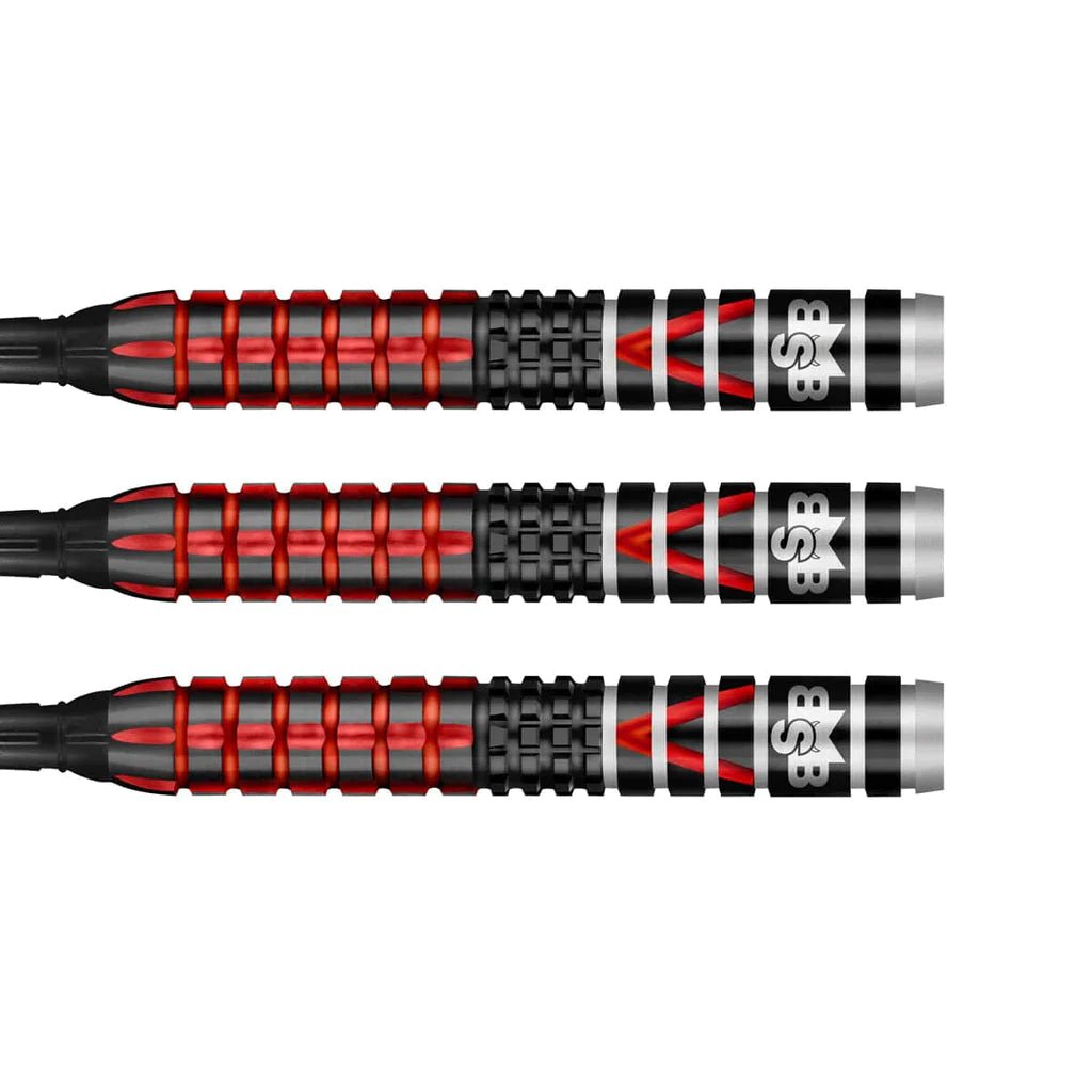 Dieser Defiant Barrel mit mittig liegendem Schwerpunkt ist in seinem Kern solide und stark und gibt niemals nach. Entwickelt in enger Zusammenarbeit mit PDC-Weltmeister Michael Smith und hergestellt von Shot Dartisans für Prestige und Präzision. Dieses dreifach gefärbte Barrel aus Rot, Silber und Schwarz besteht zu 90 % aus Wolfram und ist mit schwarzem Titan beschichtet. Es hat eine pfeilscharfe rote V-Einbuchtung, eine Hommage an Michaels Heimatstadt St. Helens. Barrel-Design: Fein gefräste Einschnitte umschließen den Anfang als Referenz. Gefolgt von einer Matrix aus Schnitten, die zwischen Halten und Loslassen oszillieren. Die gitterförmigen Ringe in der Mitte teilen die vorderen und hinteren Griffzonen und geben die Fingerposition vor. Im hinteren Bereich ist Michael Smiths charakteristisches St. Helens V in den Barrel geschnitten. Die Rillen zwischen diesen Merkmalen sind nachbearbeitet und sorgen für eine starke Kante und einen sicheren Wurf. Die Schnitte am hinteren Ende ermöglichen eine fein abgestimmte Fingerplatzierung.