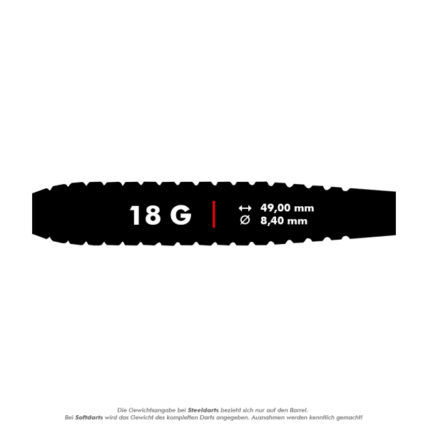 Bei Softdarts wird das komplette Gesamtgewicht des Darts angegeben.