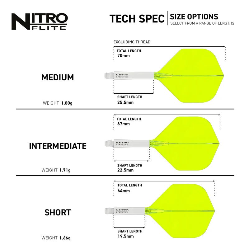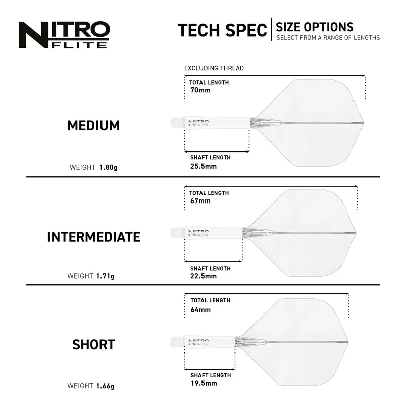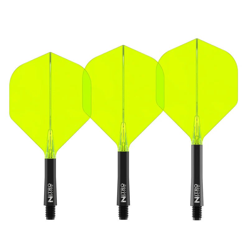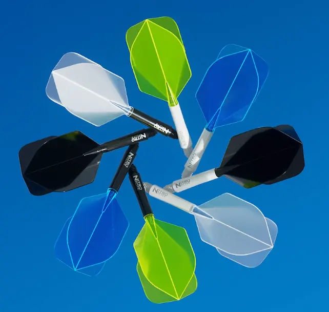 Das Nonplusultra an sportlicher Leistung. Vollständig integriertes Schaft- und Flightsystem mit perfektem 90-Grad-Flügeldesign für eine gleichmäßige Flugbahn basierend auf den Nitrotech Schäften.