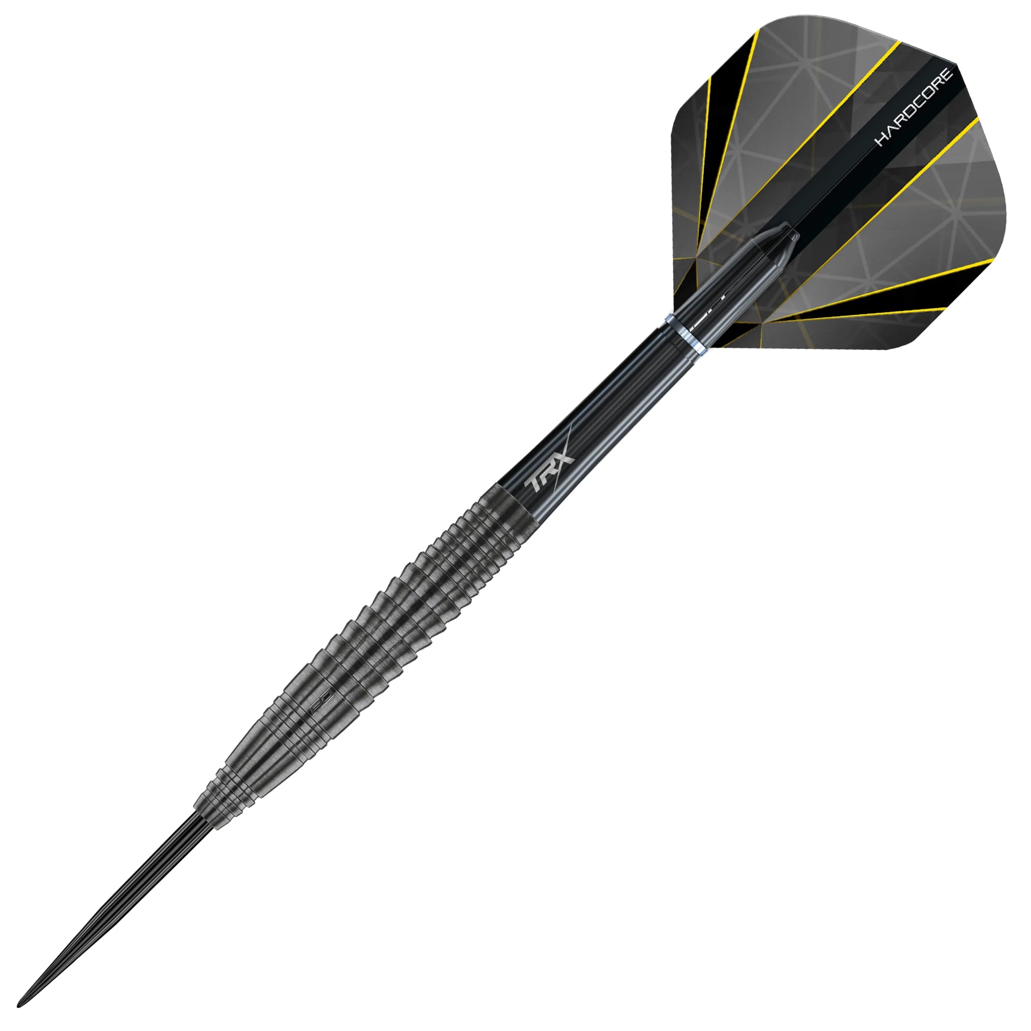 Das Set ist ausgestattet mit schwarzen TRX polymer shafts (Short) und Hardcore extra thick standard Flights.