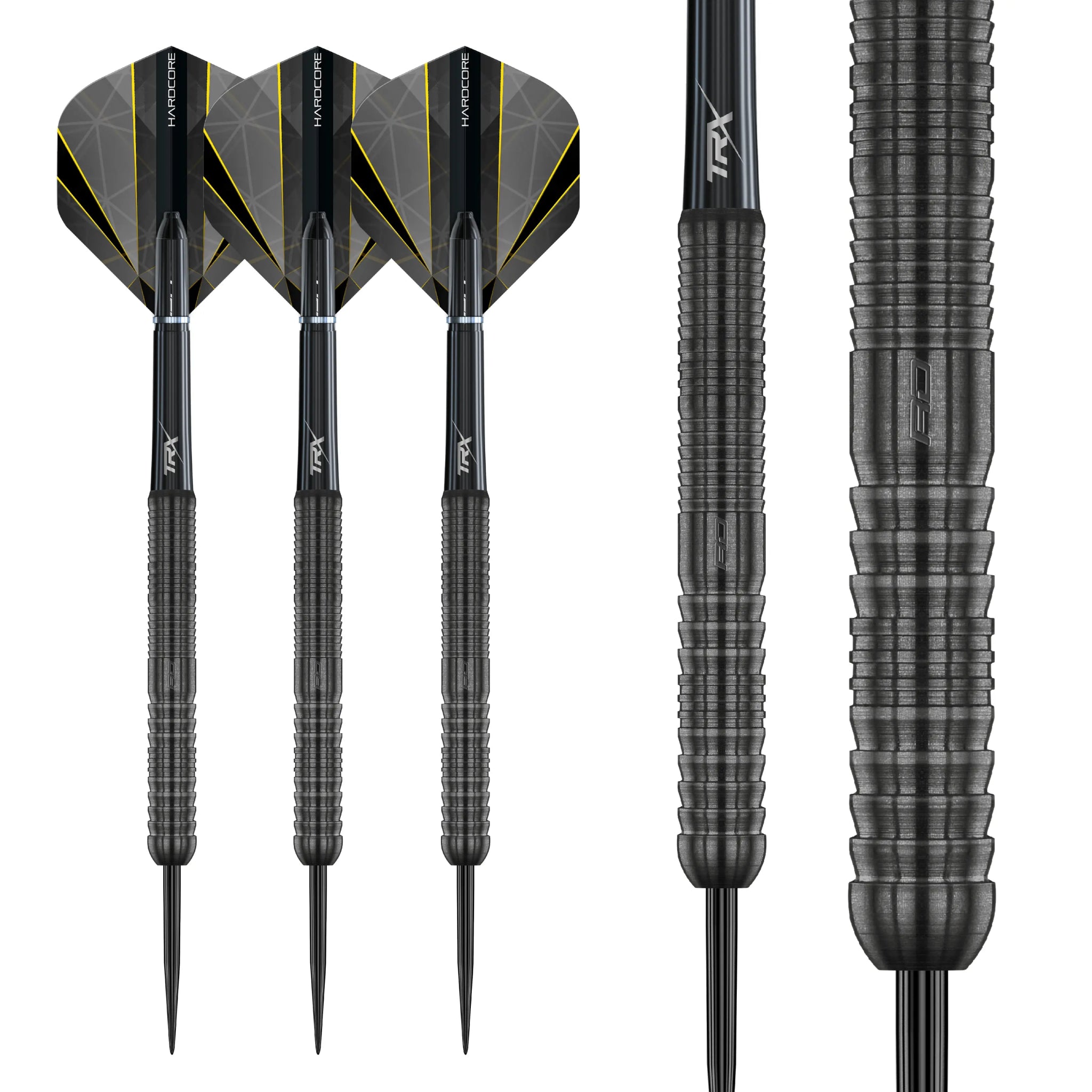 Das Set ist ausgestattet mit weißen TRX polymer shafts (Short) und Hardcore extra thick standard Flights.
