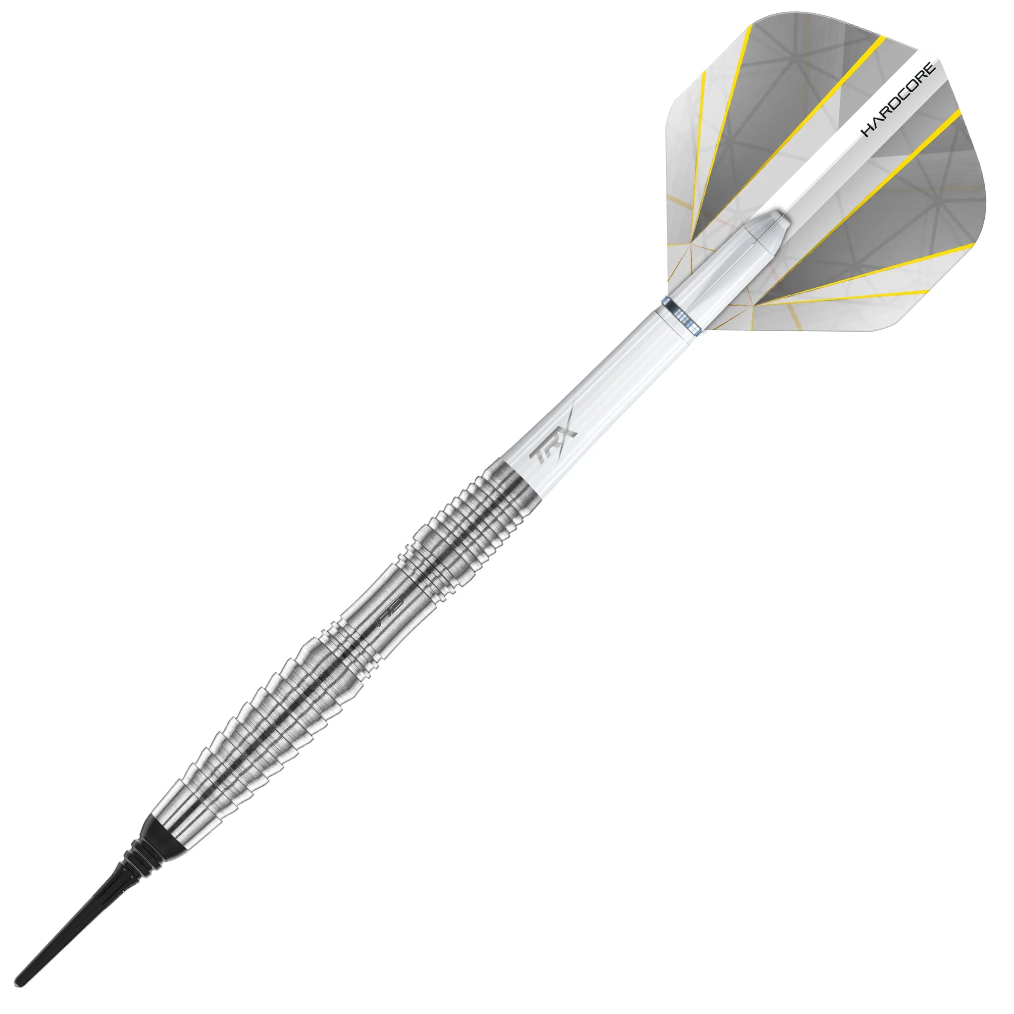 Das Set ist ausgestattet mit weißen TRX polymer shafts (Short) und Hardcore extra thick standard Flights.