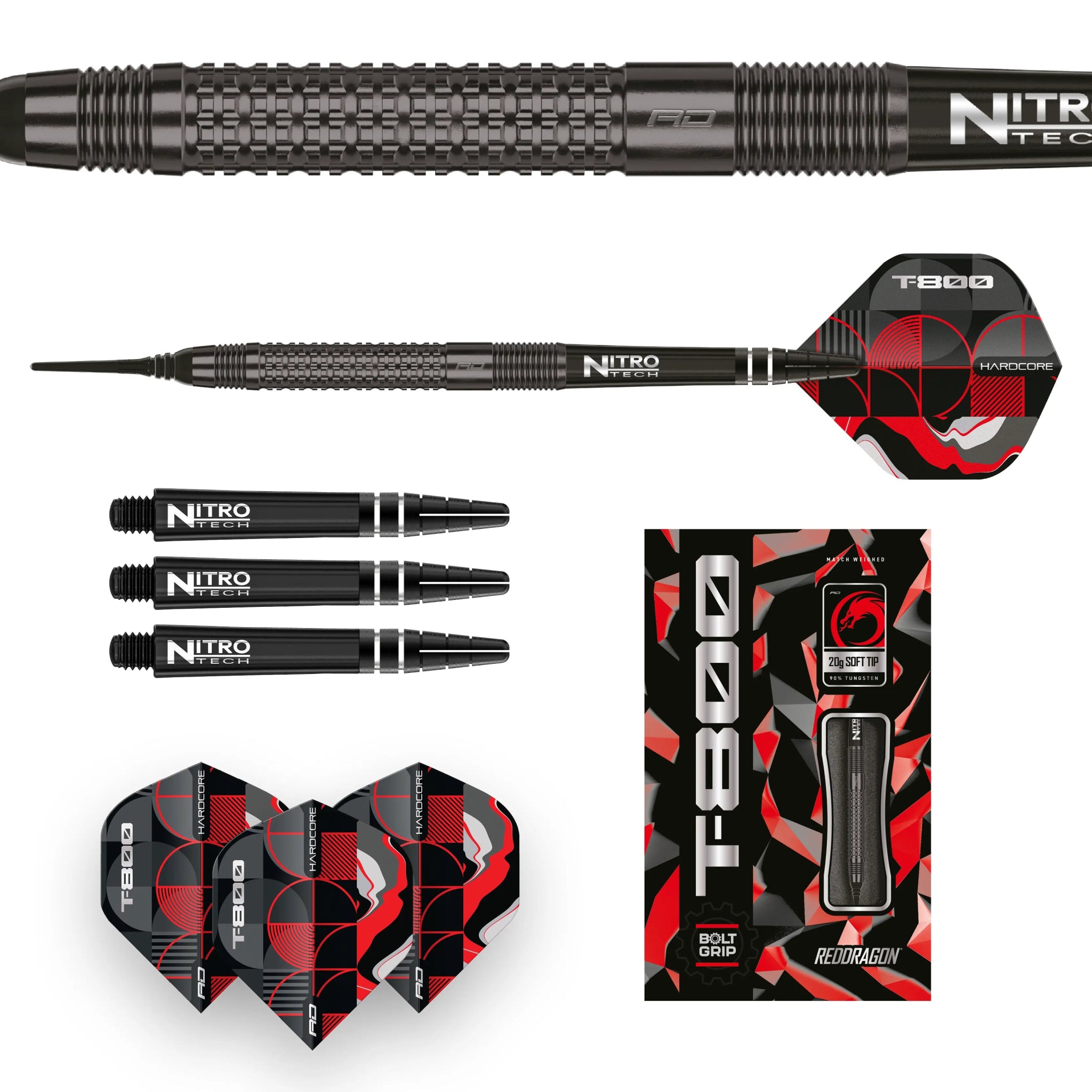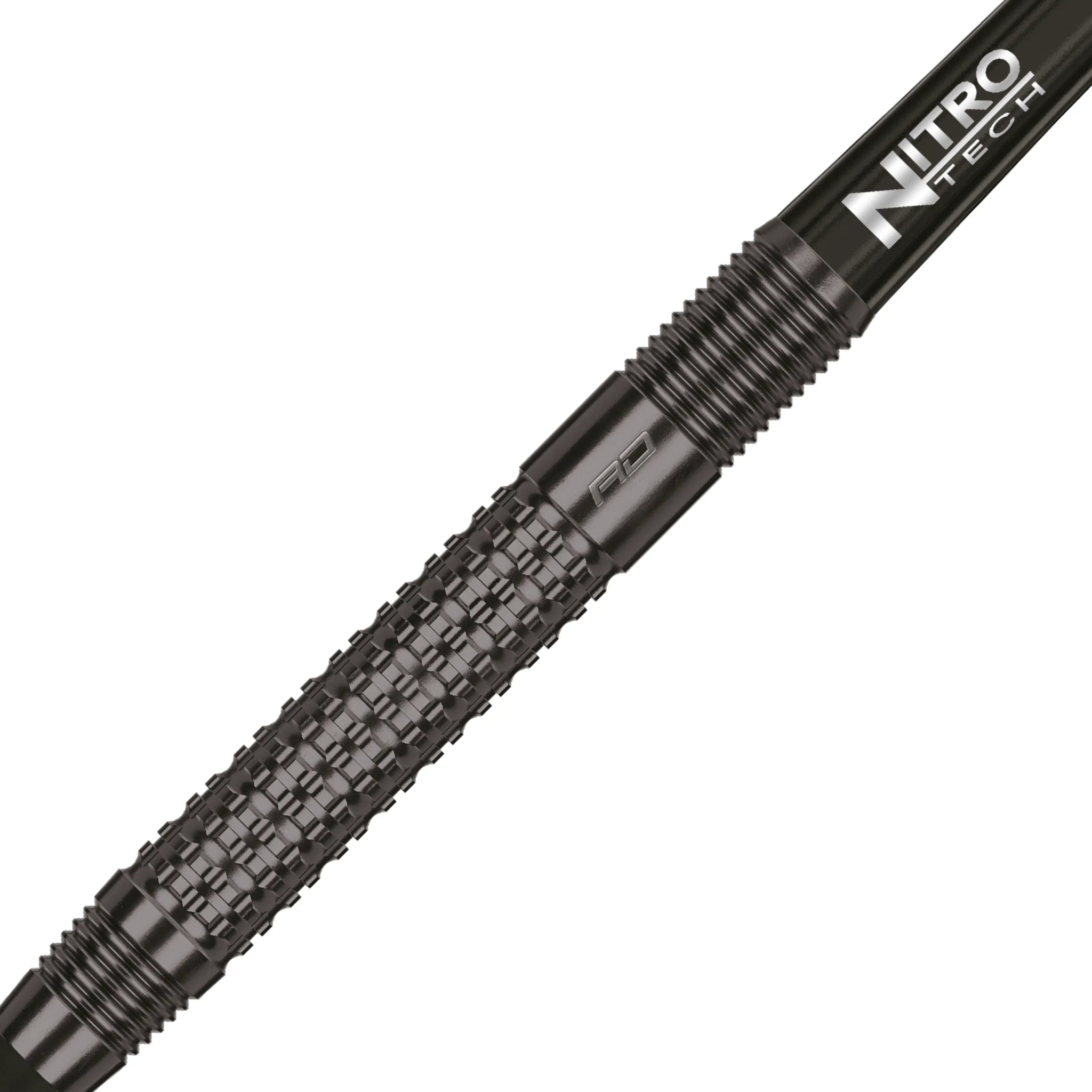 Das Set ist ausgestattet mit schwarzen Nitrotech polymer shafts (Short) und Hardcore extra thick standard Flights.