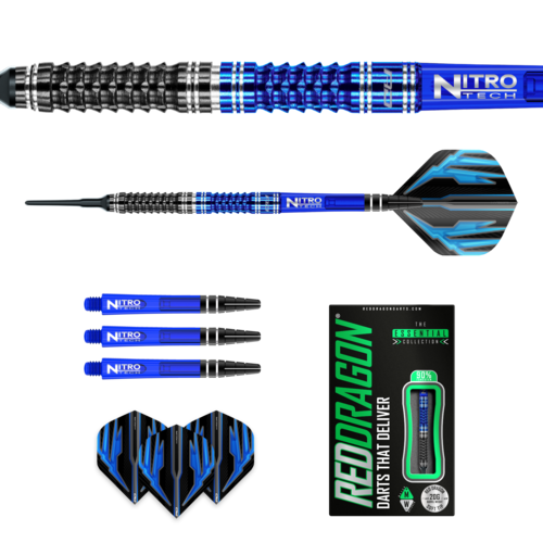Das Set ist ausgestattet mit blauen Red Dragon Nitrotech Shafts und Red Dragon Flights.