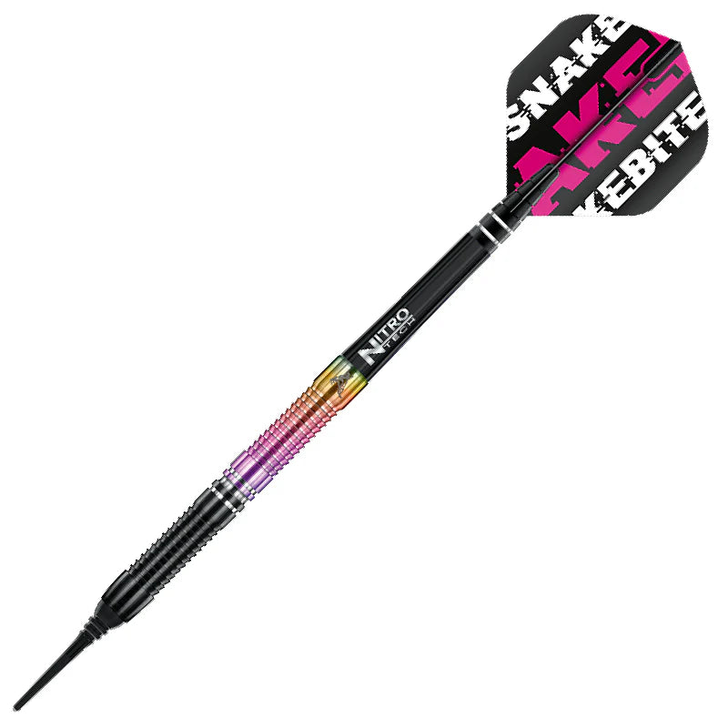 Snakebites Weltmeisterdarts sind inspiriert von einem Prototyp Barreldesign, das neben dem modifizierten Razor Edge Gripprofil eine PVD Doppelbeschichtung in Regenbogenfarbe und Schwarz hat. Pete ist seit über einem Jahrzehnt auf der Suche nach den perfekten Darts, um das erstaunliche Spiel, von dem er weiß, dass er es hat, auf die Weltbühne zu bringen. Dieser besondere Prototyp war das Ergebnis wochenlanger Flugbahnanalyse, dynamischer Tests und unermüdlicher Feinabstimmung. Die Peter Wright World Championship 2020 Edition bietet die Turniergewinn-Modifikation des Red Dragon Markenzeichens Razor Edge Grip mit seinem einzigartigen Profil.