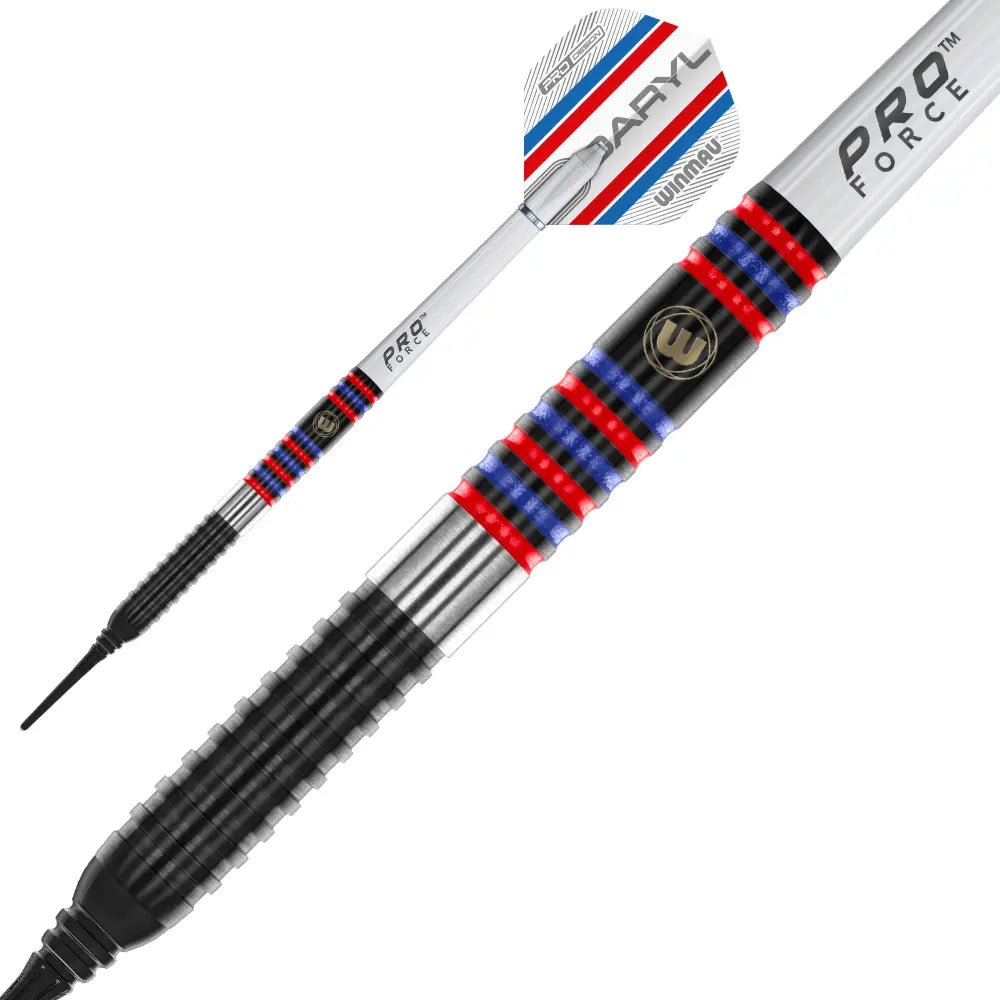 Das Set ist ausgestattet mit Pro Force Medium Shafts und Winmau Specialist Players Prism Standard Flights.