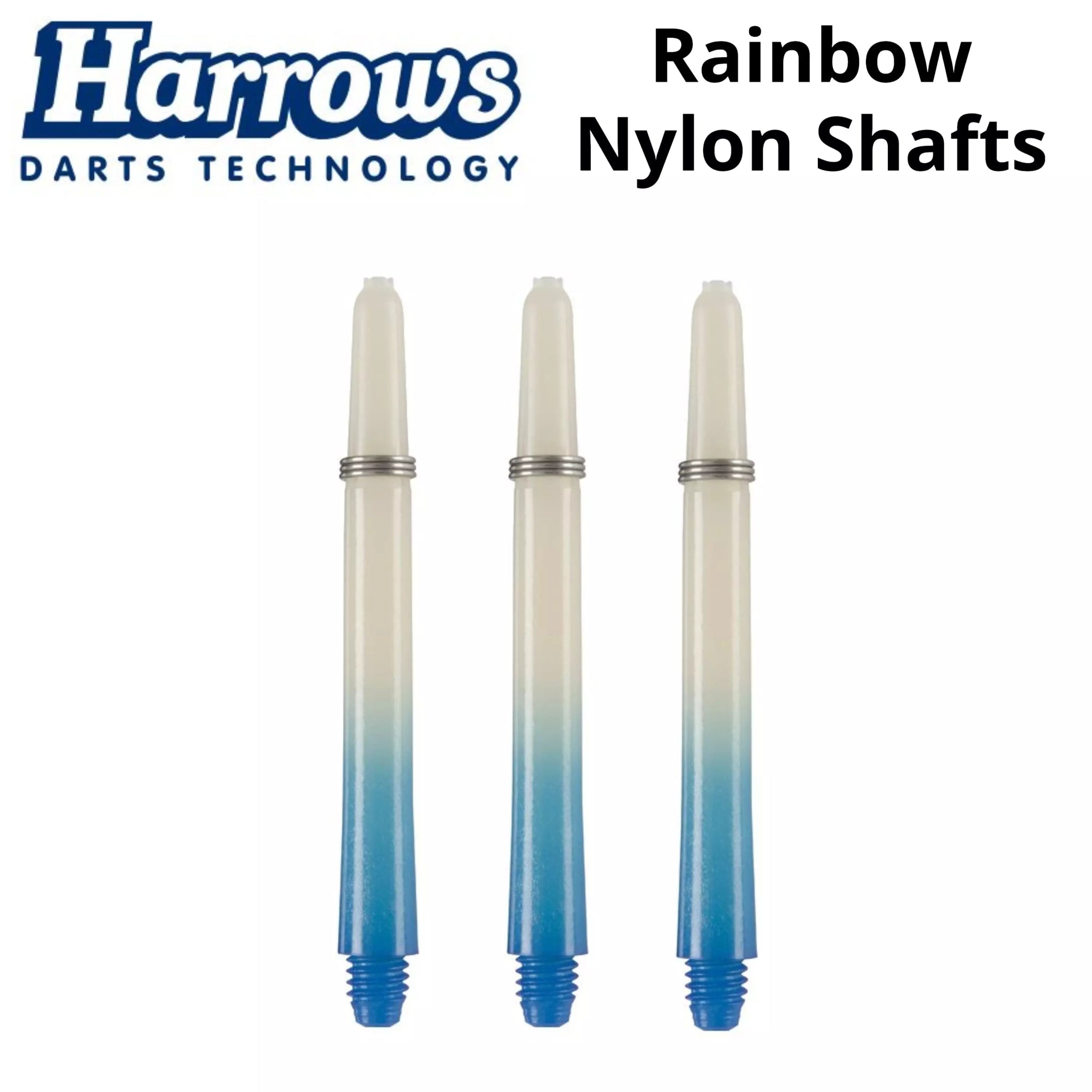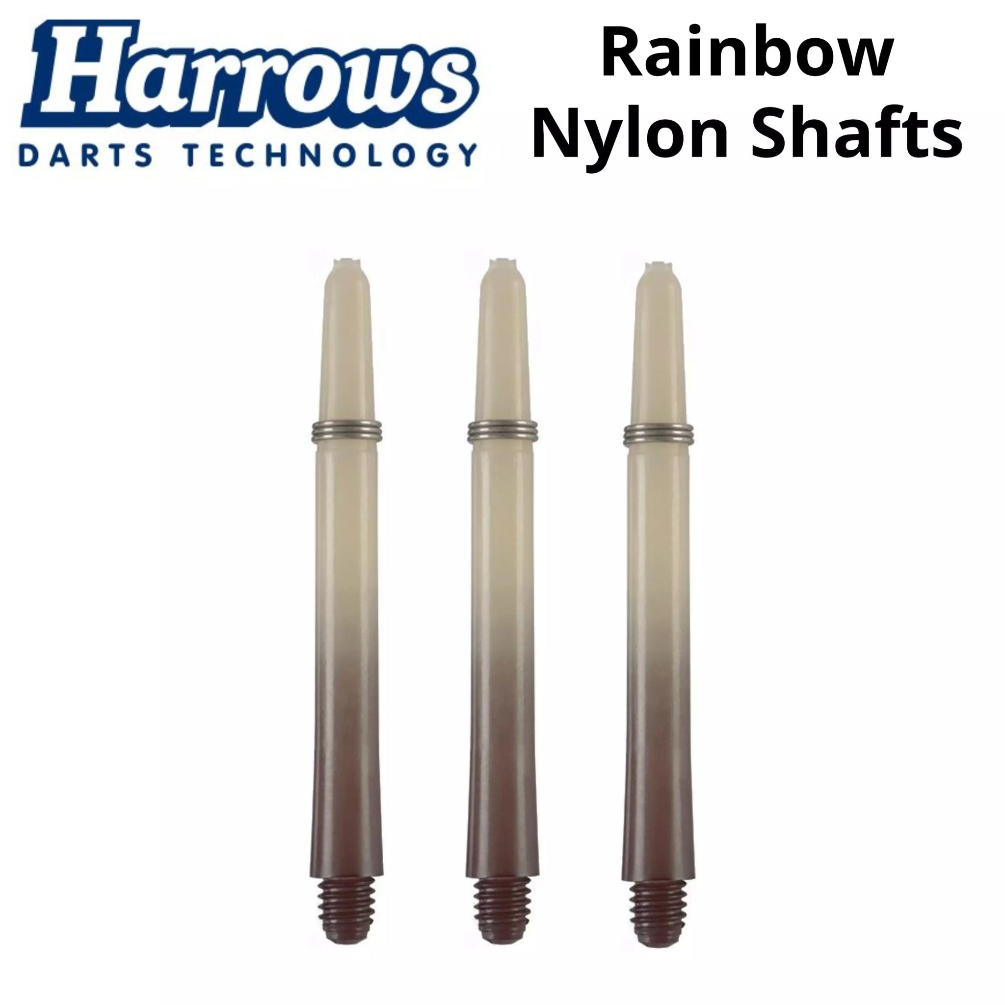 Harrows beliebter Dartshaft mit der Rainbow Optik. 2-farbiger Nylon Shaft. Komplett mit Federring zum fixieren der Flights.