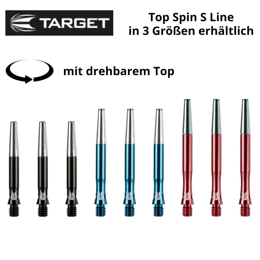 Der Top Spin S Line Schaft ist die Neuentwicklung des originalen Top Spin Schaftes von Target. Die S-Linie verfügt über einen verbesserten Drehmechanismus, um die Festigkeit zu erhöhen und sicherzustellen, dass sich der Top korrekt dreht, was dazu beiträgt, die Ablenkung des Darts zu reduzieren. Die S-Linie ist ein schlanker, dünner und moderner Ansatz für einen Spinning-Schaft. Die Schäfte sind mit einem gelaserten Target-Logo versehen, dem Markenzeichen für Qualität. Erhältlich in Short, Intermediate und Medium.