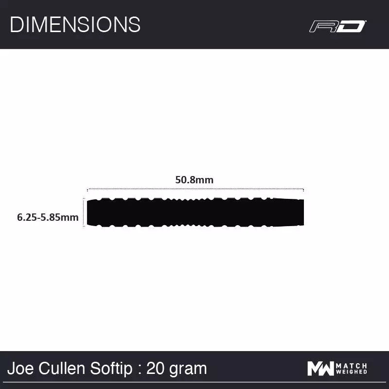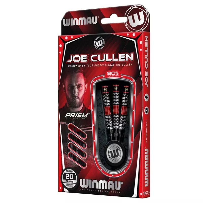 Das Set ist ausgestattet mit schwarz/roten Winmau Vecta Blade 6 Shafts (Short) und Winmau Joe Cullen Flights.