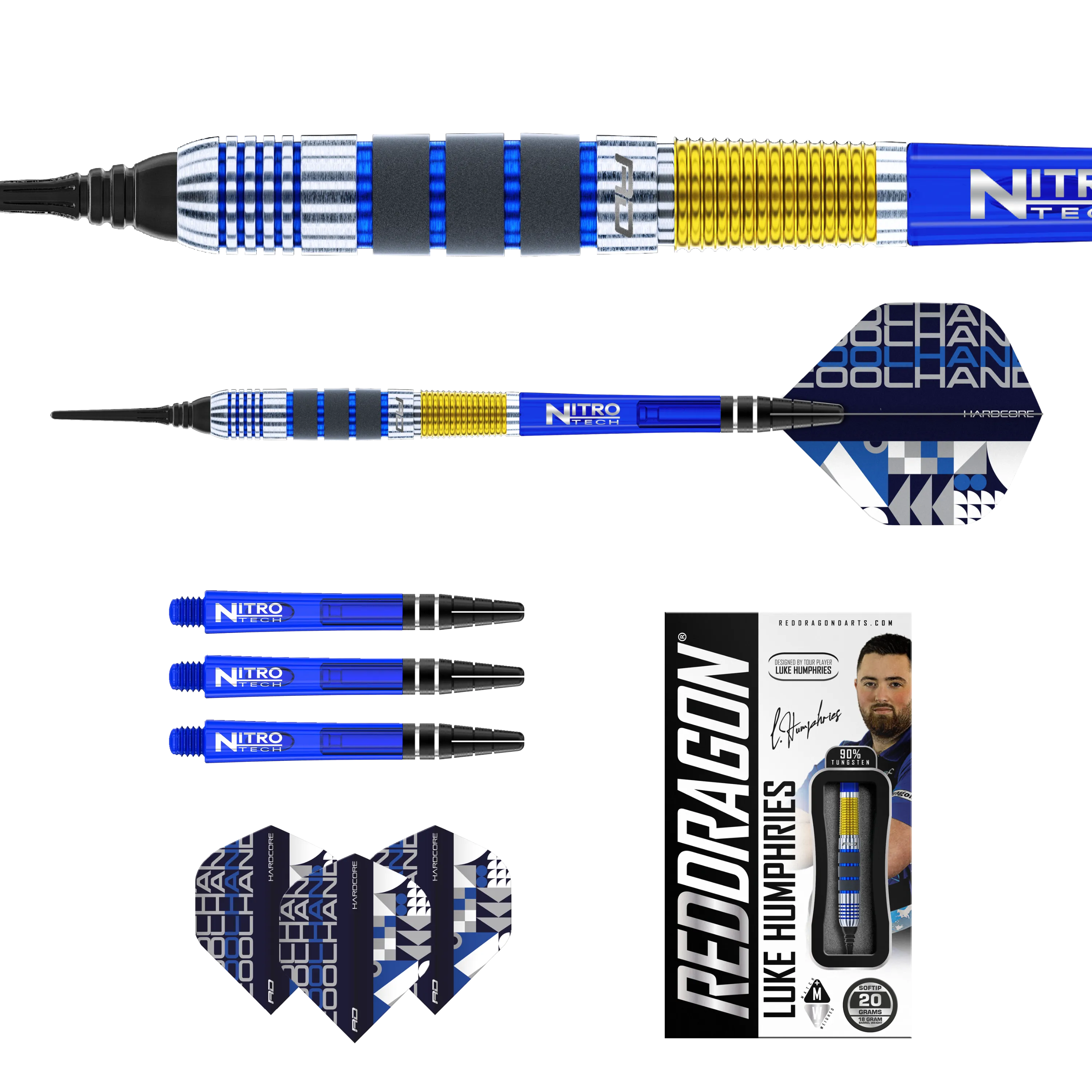 Das Set ist ausgestattet mit schwarzen Nitrotech Shafts und Red Dragon Hardcore Flights.