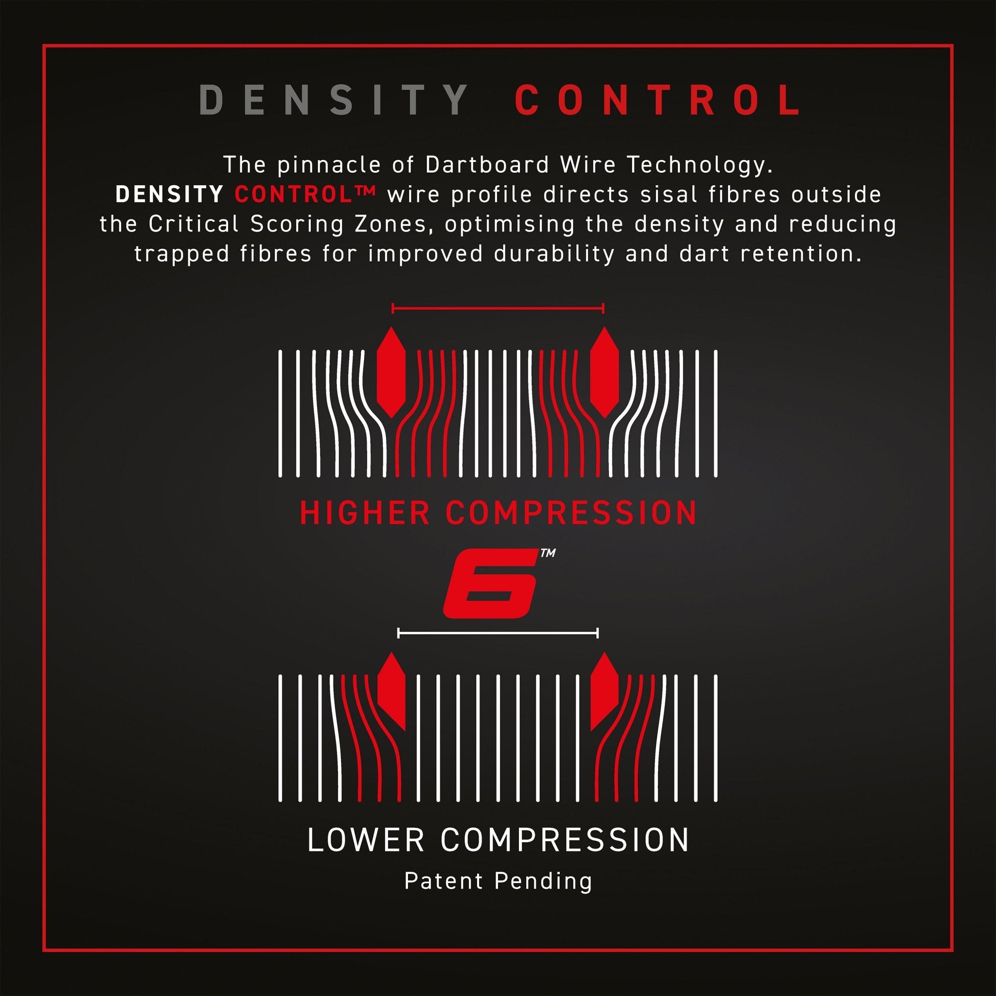 Die wegweisende Verdrahtung des Blade 6 besteht aus dem neuesten Density Control™-Draht, der für eine optimale Faserdichte und einen verbesserten Halt der Darts in den Double-, Triple- und Bullseye-Zonen sorgt.