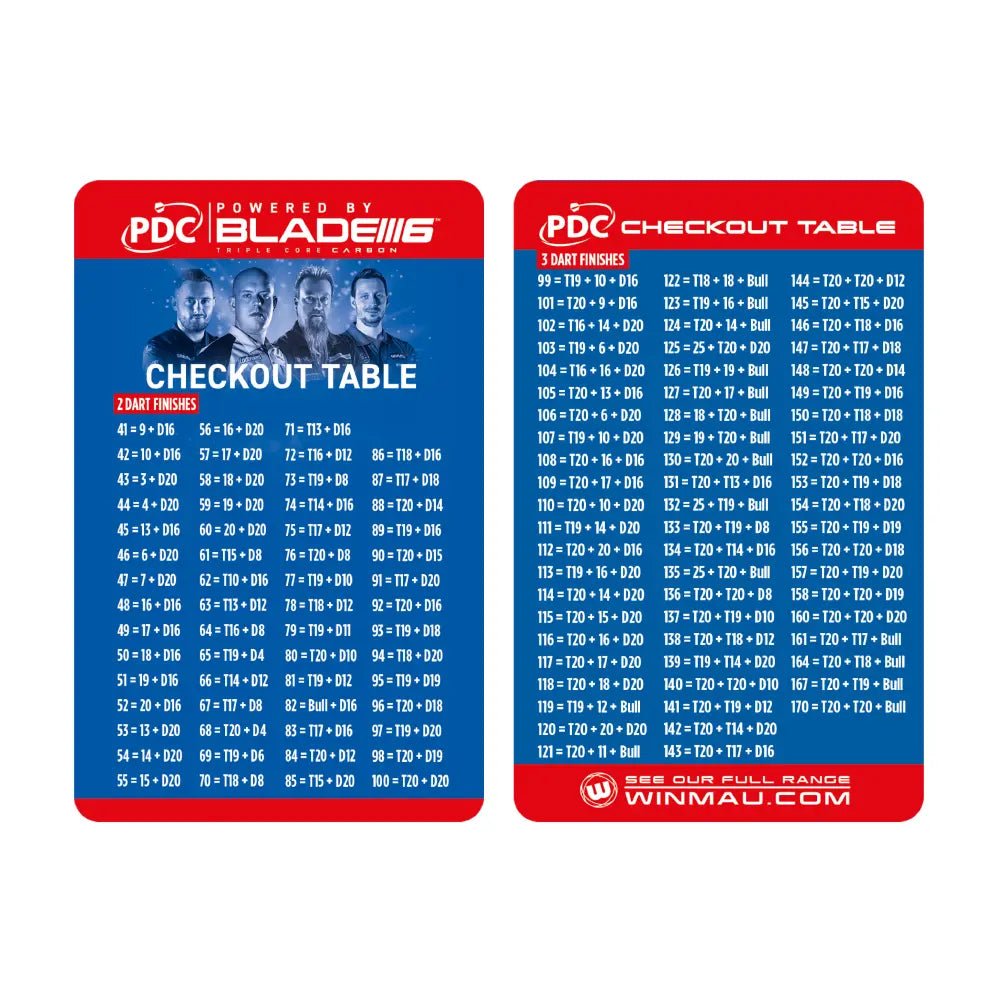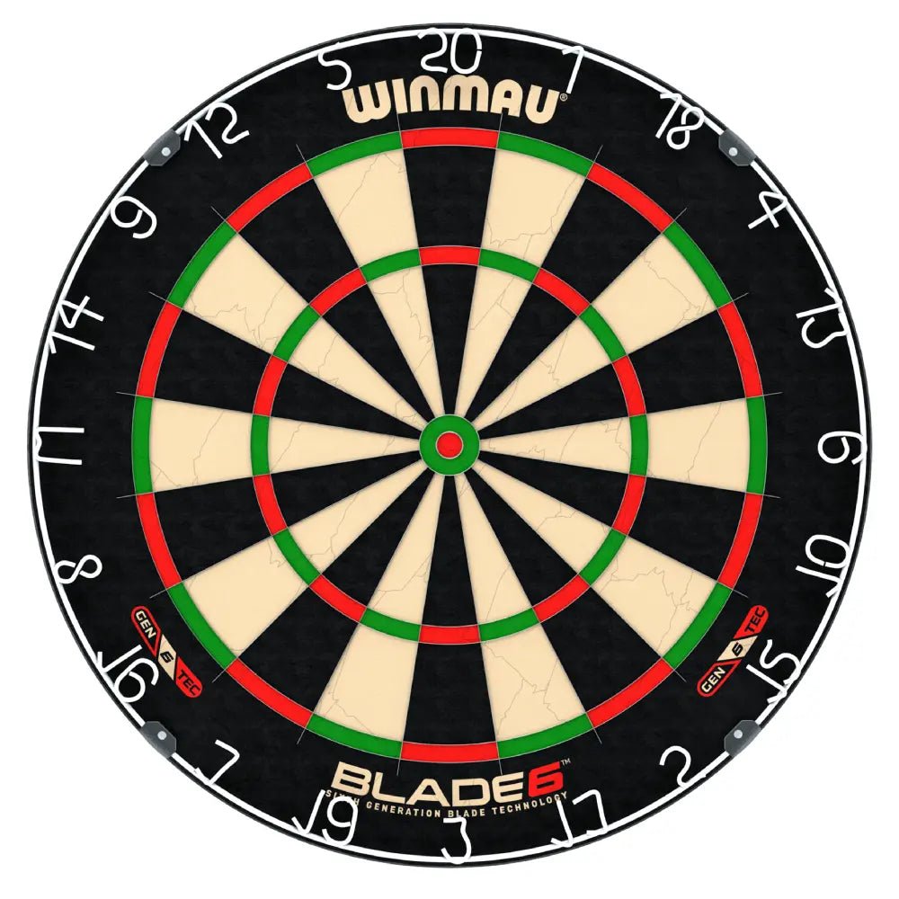 Lieferung inkl. Montagezubehör, Checkout-Tabelle, selbstklebende Ocheline, 6 Steeldarts, Blade 6 Dartboard und bedrucktem Winmau PDC Blue Surround.