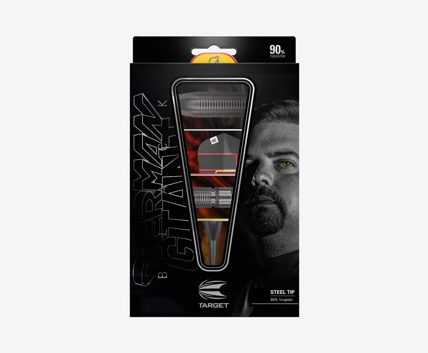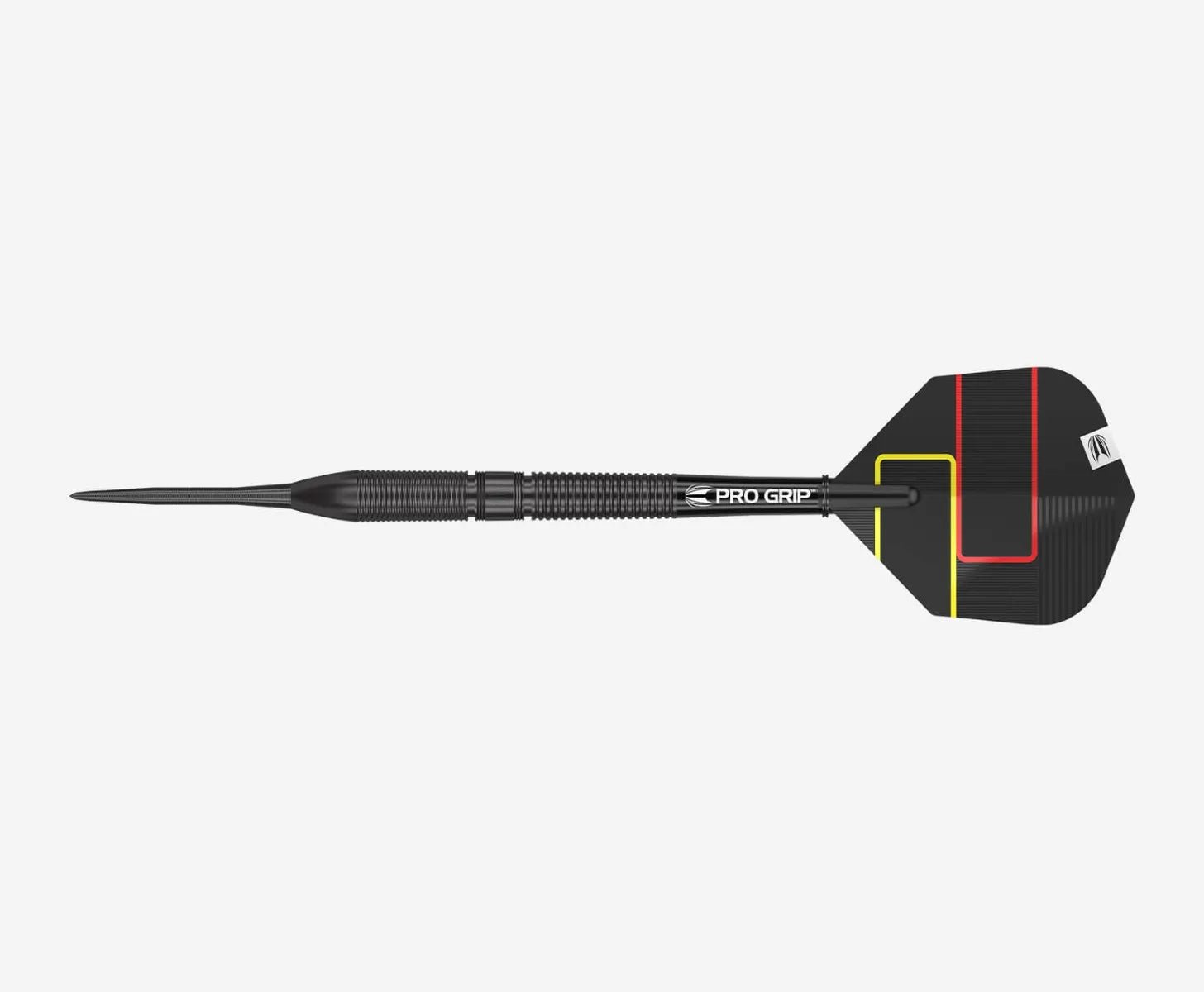Mit einer atemberaubenden schwarzen Titan-Beschichtung für eine zusätzliche Schicht der Haltbarkeit und verbesserte Ästhetik, die sandgestrahlten radialen Rillen ermöglichen eine bessere Kontrolle und Zielgenauigkeit. Die auf Präzision ausgelegten 90%igen Tungsten Barrels werden durch die beliebten Pro Grip Schäfte und Bolide Void Edition No.6 Flights ergänzt und mit den patentierten schwarzen 26mm Swiss Points von Target für einen komplett austauschbaren Dart abgeschlossen.