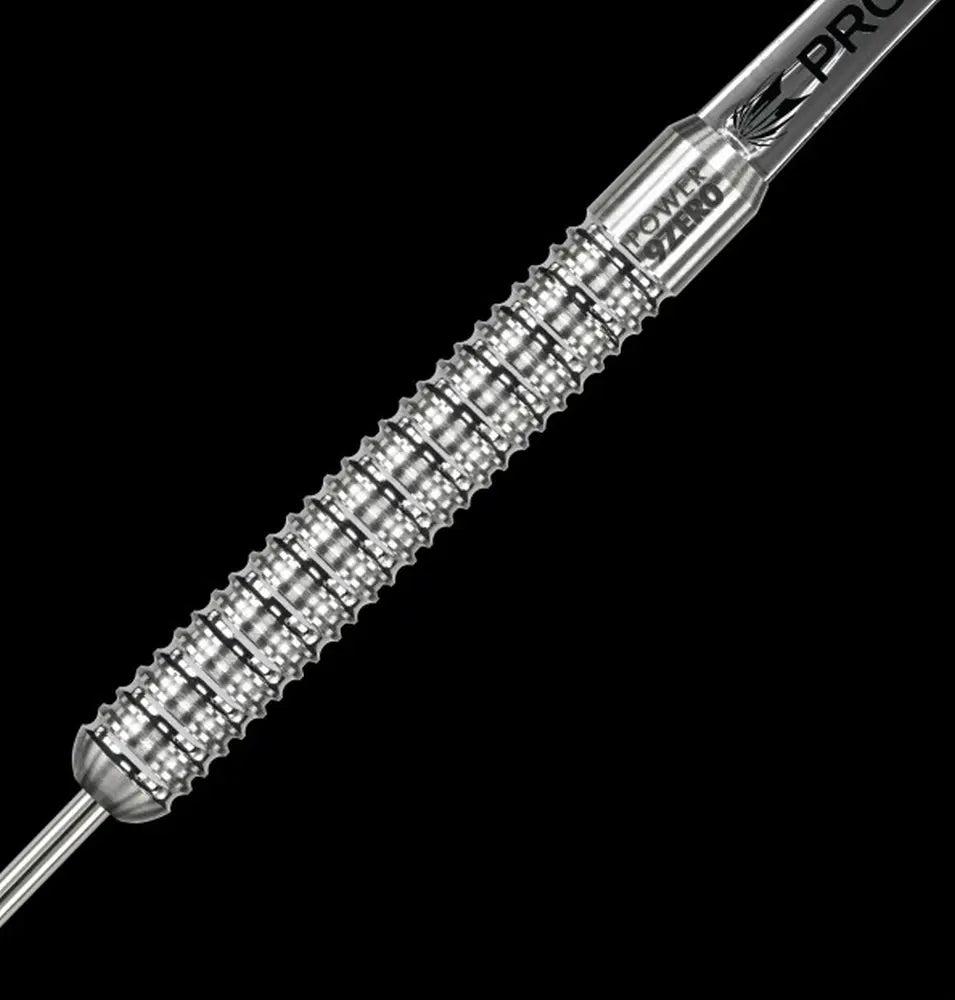 Der Dart wird dann verchromt, bevor er komplett neu bearbeitet wird, um die einzigartigen gespiegelten Rillen und den komplizierten Grip zu erhalten. Das lasergeätzte Power 9Zero-Logo, der Target Pro Grip-Schaft und Vision Flights vervollständigen einen wirklich atemberaubenden Dart.