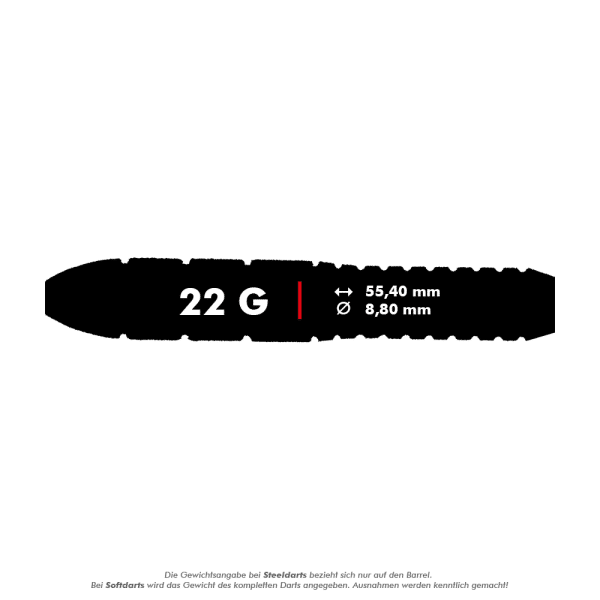 Bei Steeldarts bezieht sich die Gewichtsangabe nur auf das Barrel.