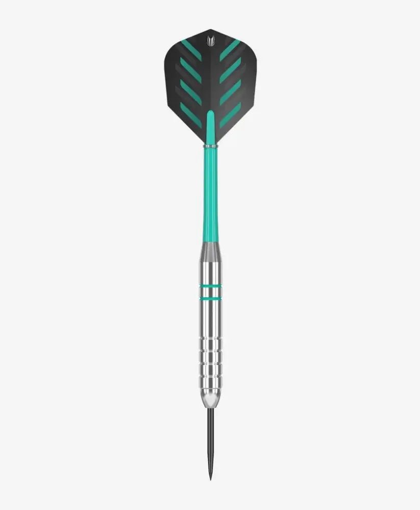 Das Set ist ausgestattet mit aqua-farbenen Target Shafts und Target Rob Cross Flights.