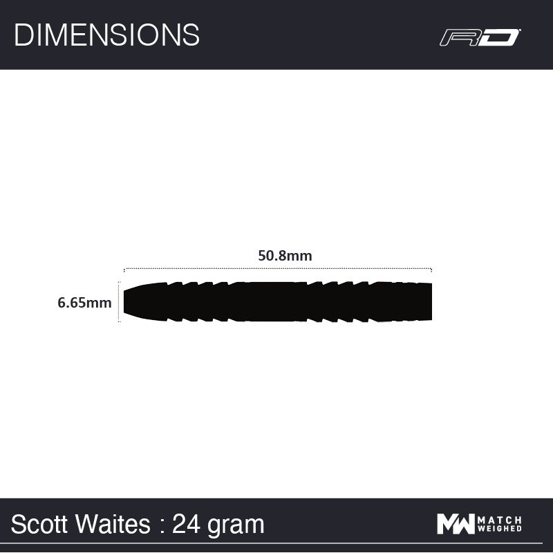 Die neuesten Darts von Scott Waites sind eine Hommage an seinen zweifachen Weltmeisterstatus mit atemberaubendem Design und Details, die Qualität ausstrahlen. Von den wunderschön klaren Designlinien bis hin zur Onyx-Beschichtung mit Silber- und Schwarzeffekt, komplett mit Scottys Markenzeichen "Orange Fire".