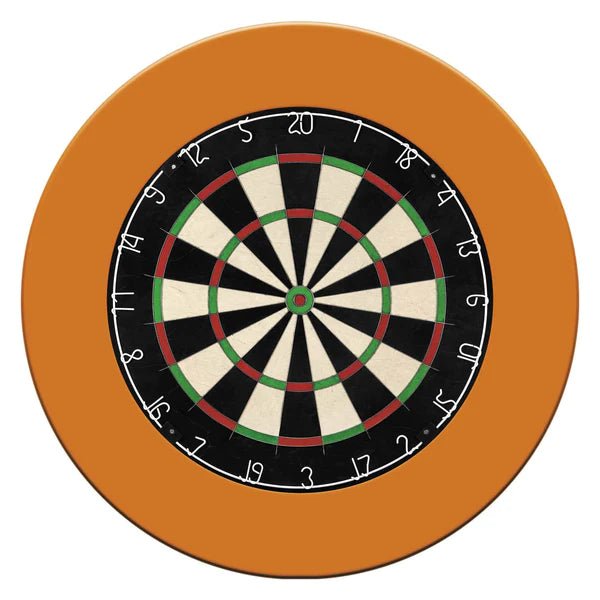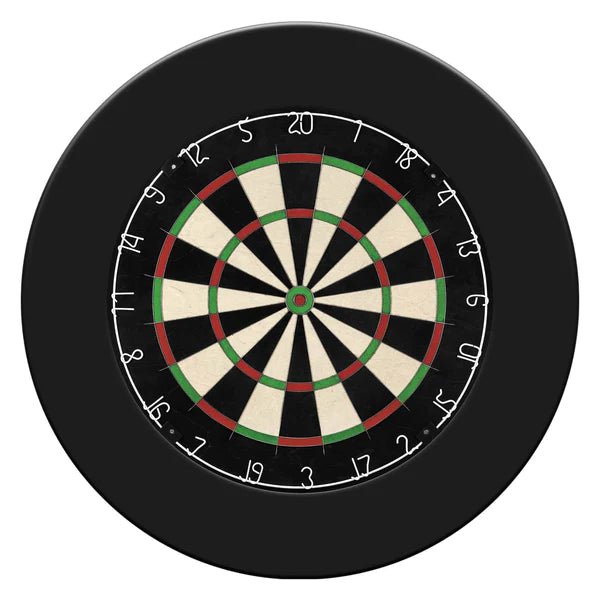 Das professionelle PU-Surround hat eine Stärke von ca 3,5 cm. Das PU-Material schützt die Wand vor Beschädigungen und minimiert die Anzahl herunterfallender Darts, dadurch werden auch die Darts und der Boden geschont. Der Auffangring lässt sich einfach auf die Dartscheibe montieren. Hierzu wird das Surround über das Board herübergezogen und hält durch den engen Schnitt selbst. Die Breite des Schutzringes beträgt ca. 12 cm, dies bietet genügend Schutz für die Wand, auch für ungeübte Dartspieler. Der Gesamtdurchmesser des Surrounds beträgt ca 68 cm.
