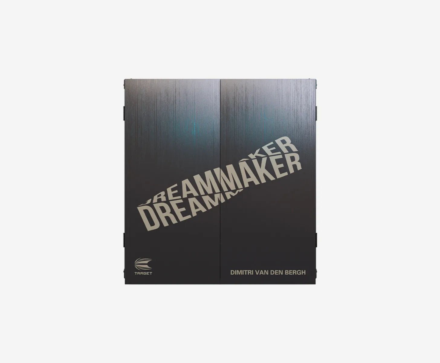 Eine Zusammenarbeit mit Dimitri Van den Bergh, mit Dimitris einzigartigem Spitznamen "Dream-Maker" und seinem Branding, das auf allen Elementen des Sets zu sehen ist, mit einem großen auffälligen Design auf den Schranktüren. Das Dartboard verfügt über einen rotierenden Score-Ring, ein ultradünnes Drahtsystem und ein klammerfreies Bullseye für präzises und lohnendes Spiel. Das selbstheilende afrikanische Sisal-Material garantiert Langlebigkeit und Formbeständigkeit bei längerem Gebrauch. Komplett mit zwei Sätzen von je 3 Messing-Steeldarts, einer wettkampftauglichen Abwurflinie für ein geregeltes Spiel und Minikreiden für die Spielstandsanzeige.