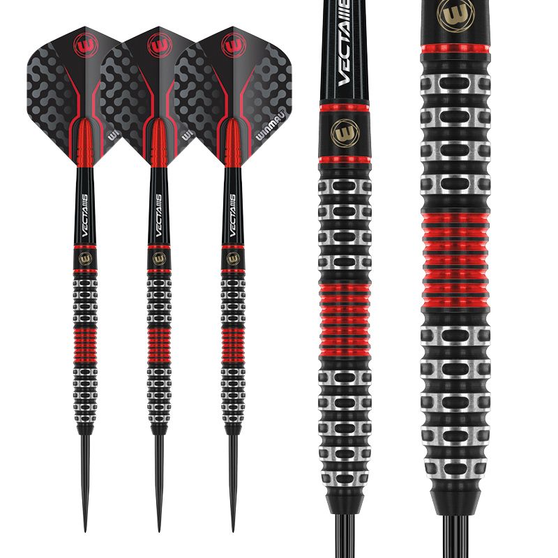 The set is equipped with black/red Winmau Vecta Blade 6 Shafts (Short) and Winmau Joe Cullen Flights.