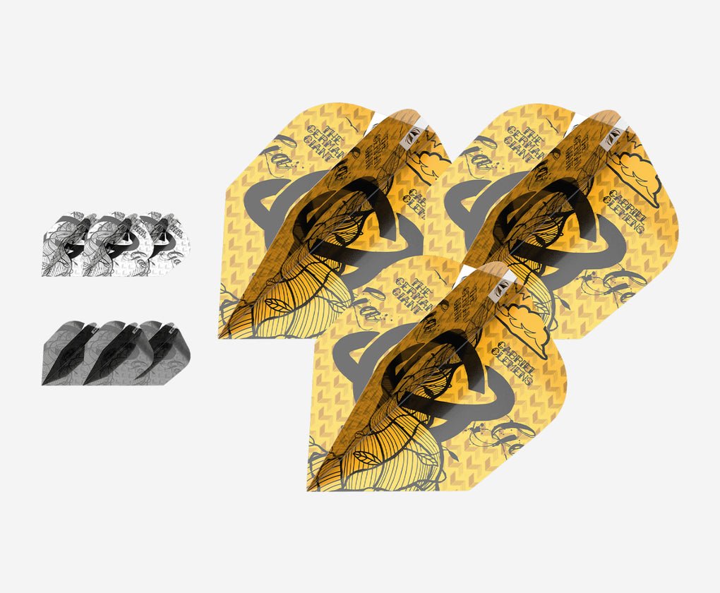 The flights feature a UV spot print to improve grip between the flight and shaft and are made from 100 micron material for added durability. The set of 3 consists of 1 set of flights in different colors.