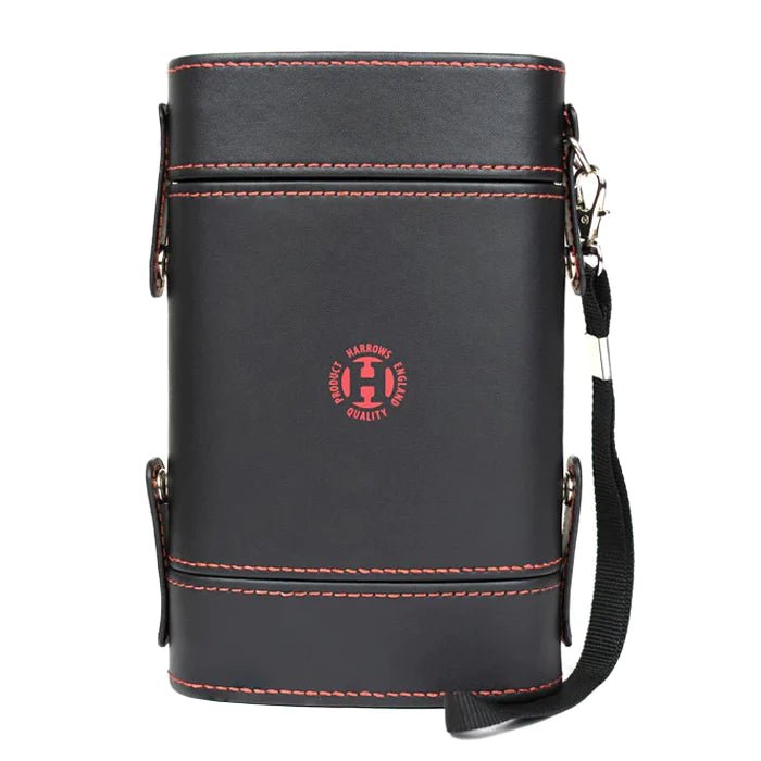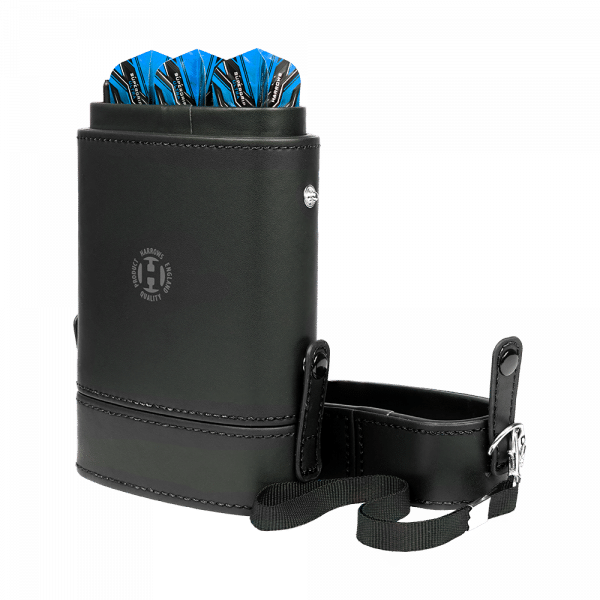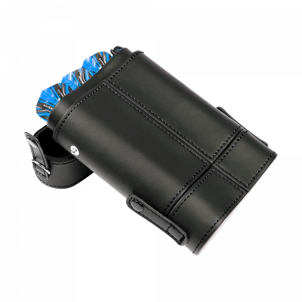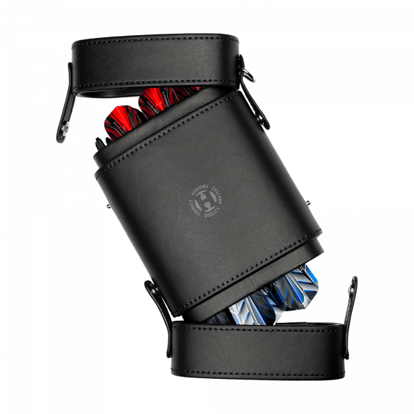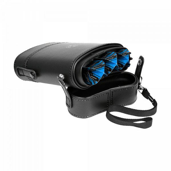 With its unusual and practical shape, the Harrows Prima dart case offers space for two fully assembled dart sets and the associated accessories. The desired set can be accessed immediately and easily thanks to the flaps on the opposite sides. The robust material and high-quality workmanship protect your equipment optimally.