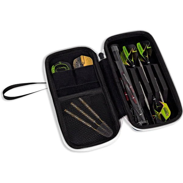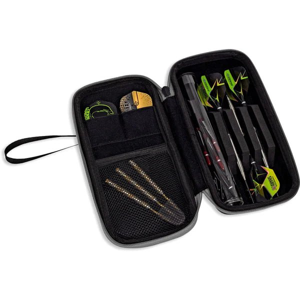 This uniquely practical and ergonomically compact bag has been designed to hold 3 fully assembled darts and offers plenty of additional storage space.
