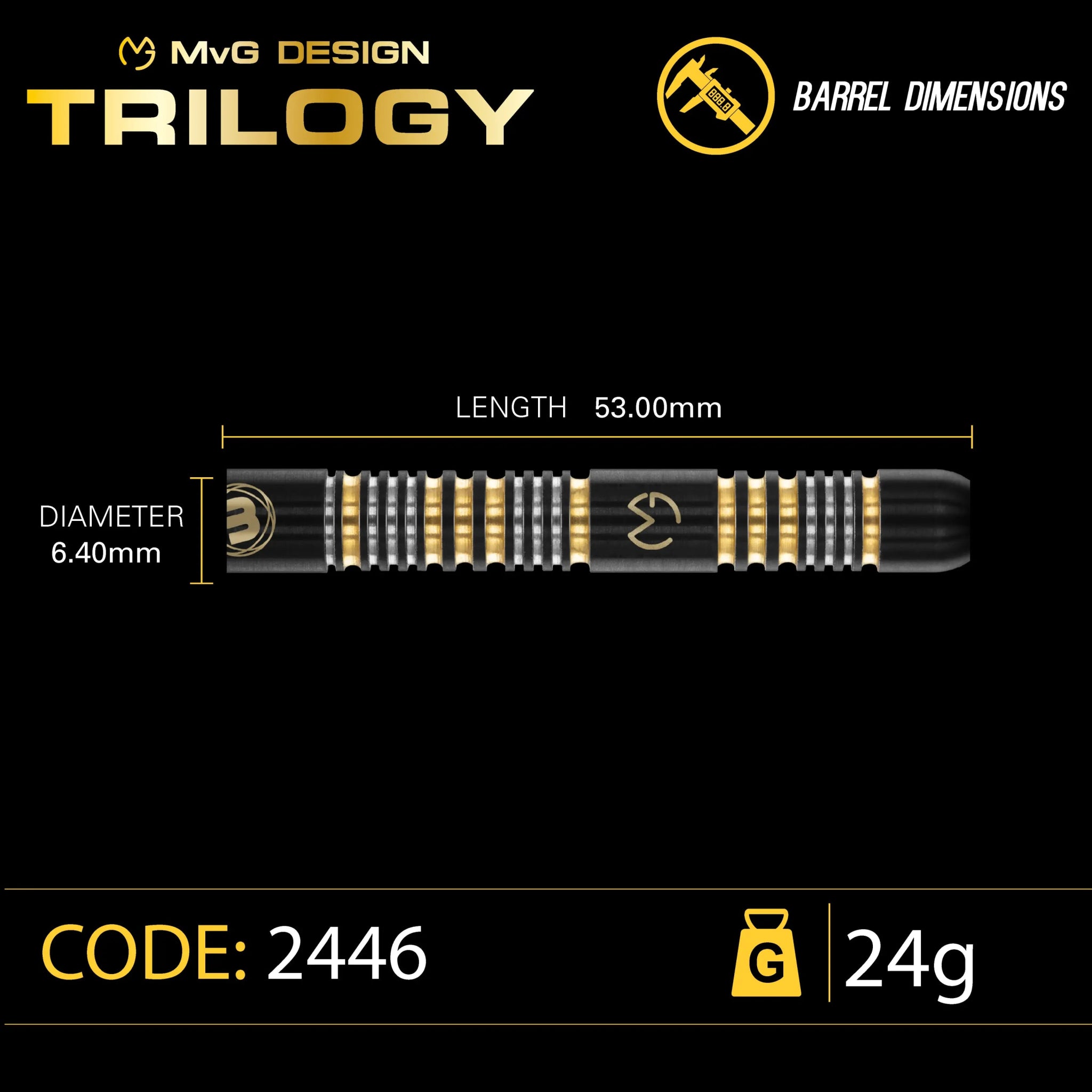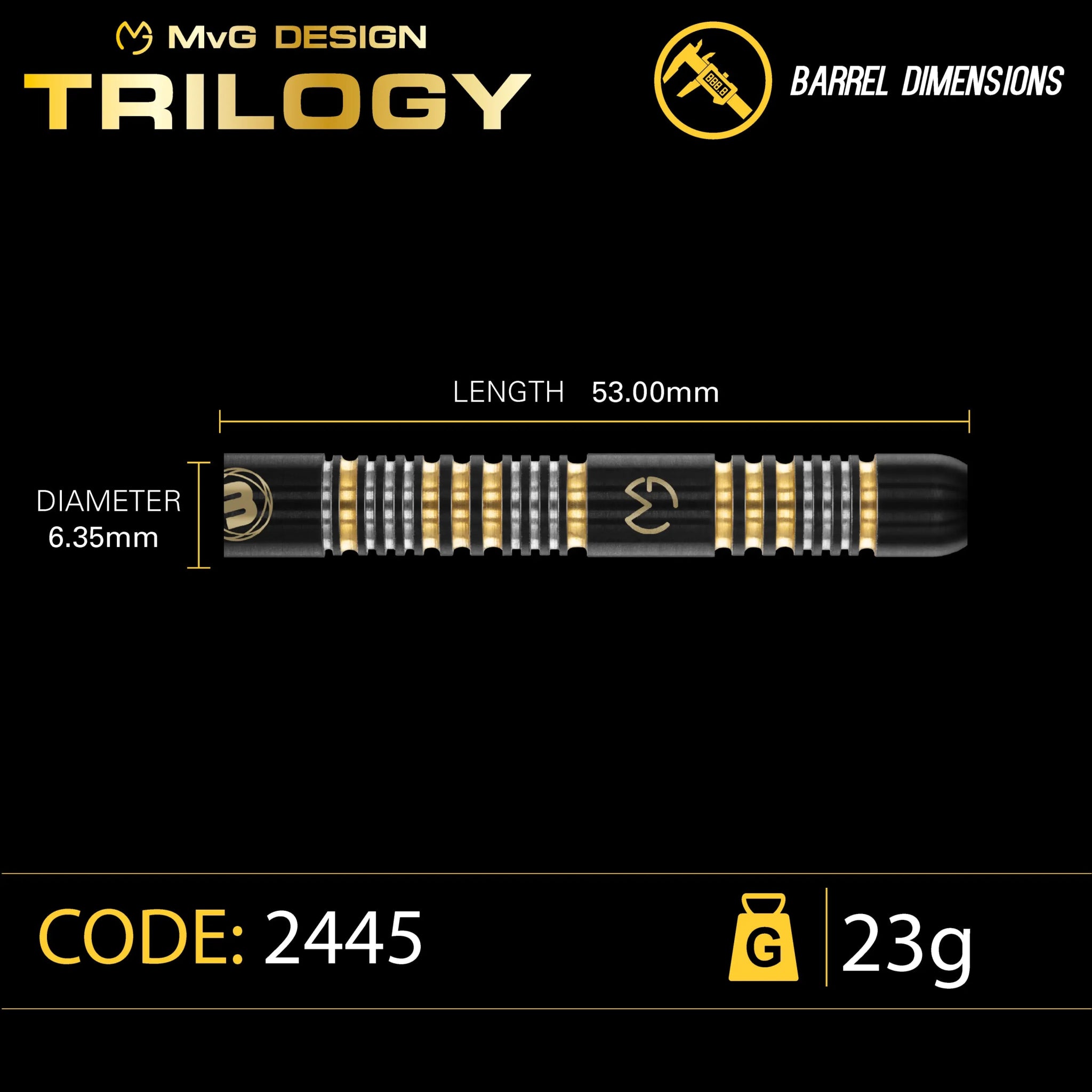 The MvG Trilogy darts are inspired by three PDC World Championships and over 140 PDC title wins. With MvG's unique parallel design dynamics, the Trilogy delivers the best grip and feel you can expect from the best casts in the world.