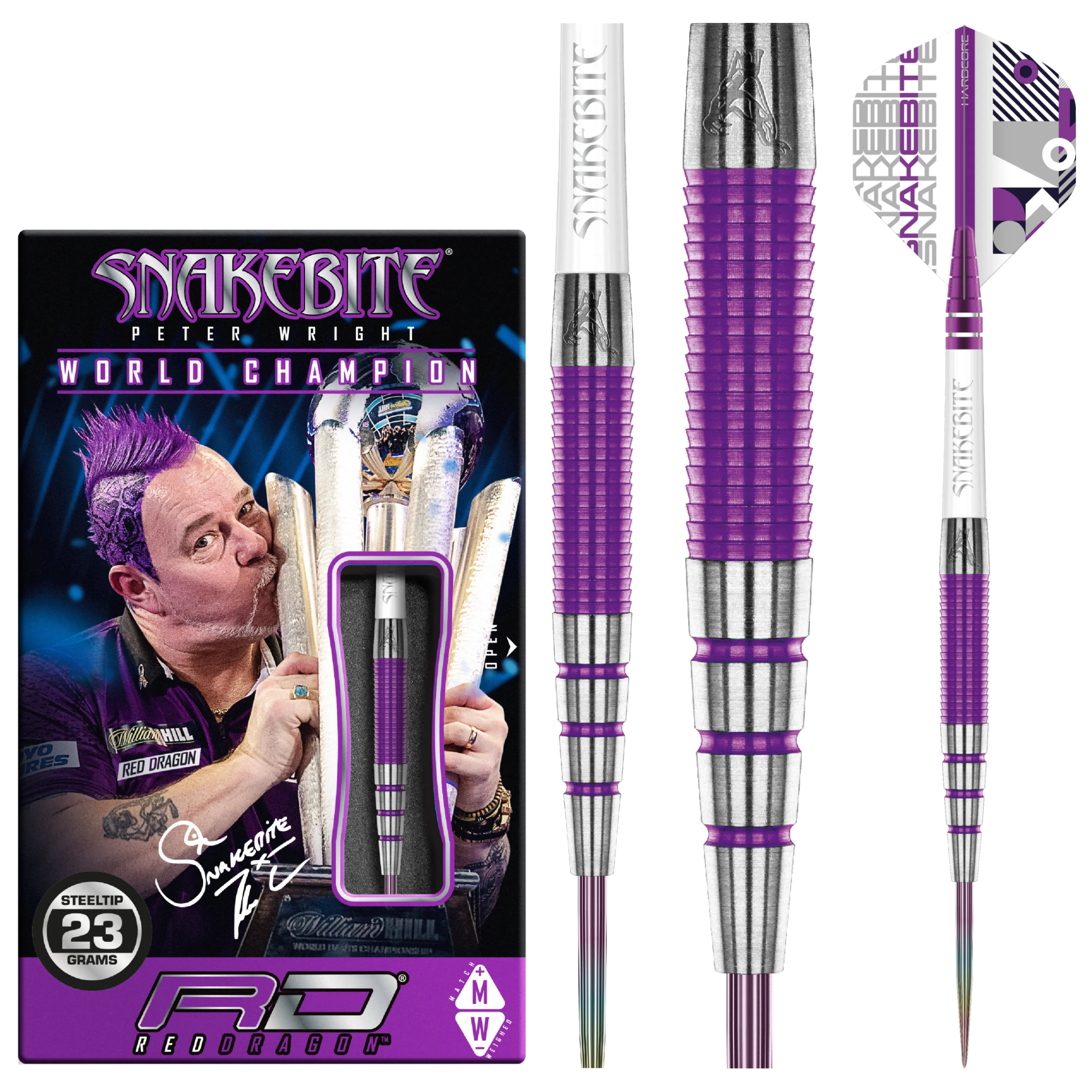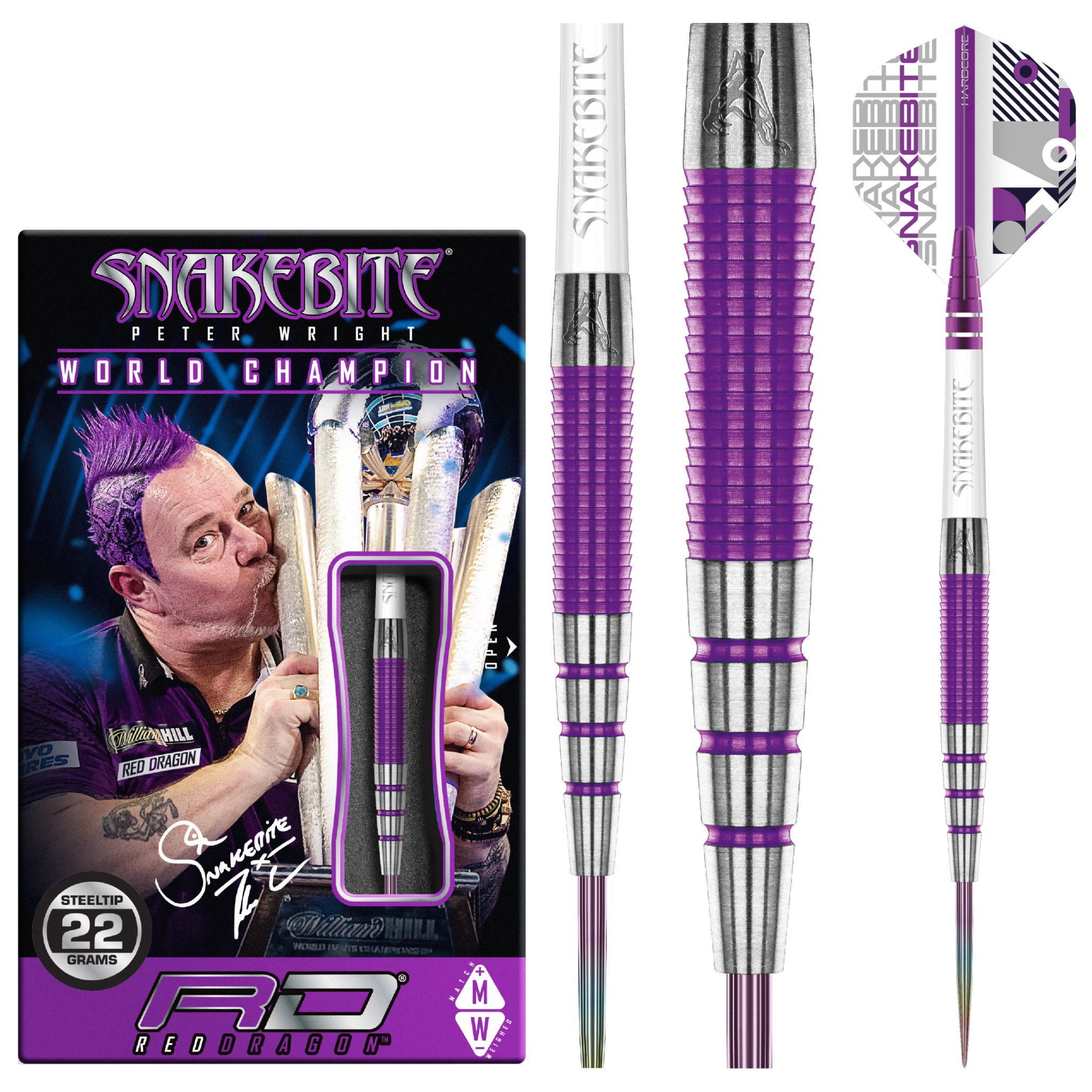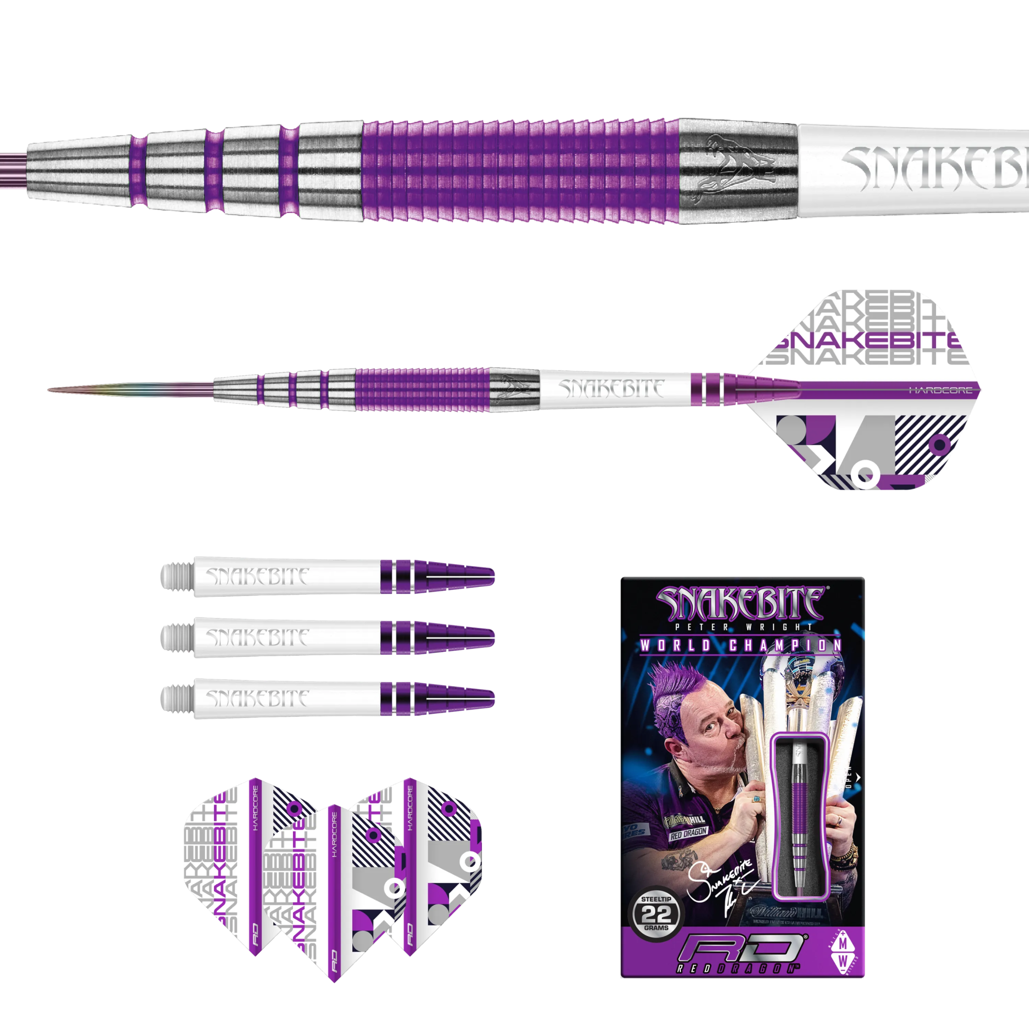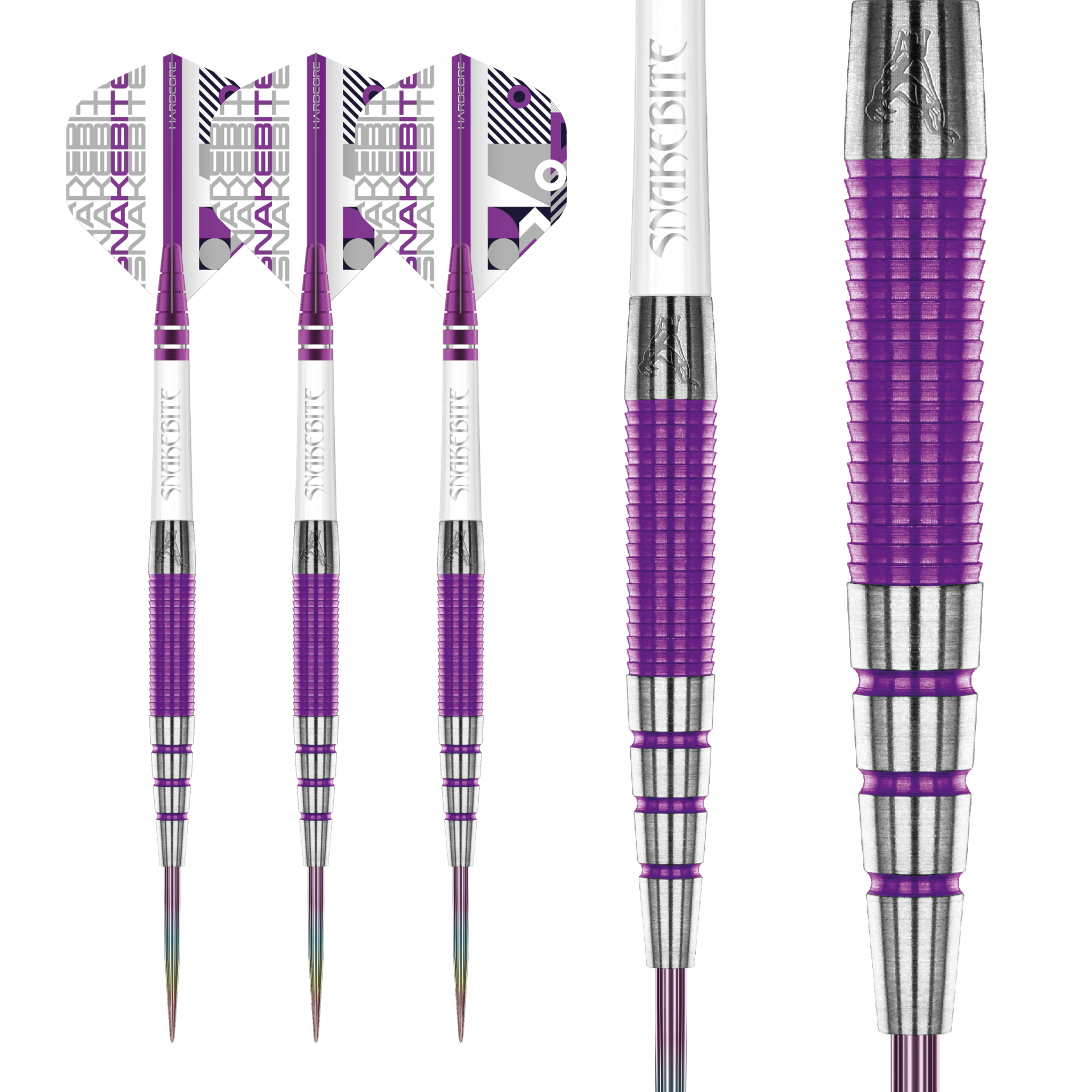 The set is equipped with white-purple Snakebite Nitrotech Shafts and Snakebite Hardcore Flights.