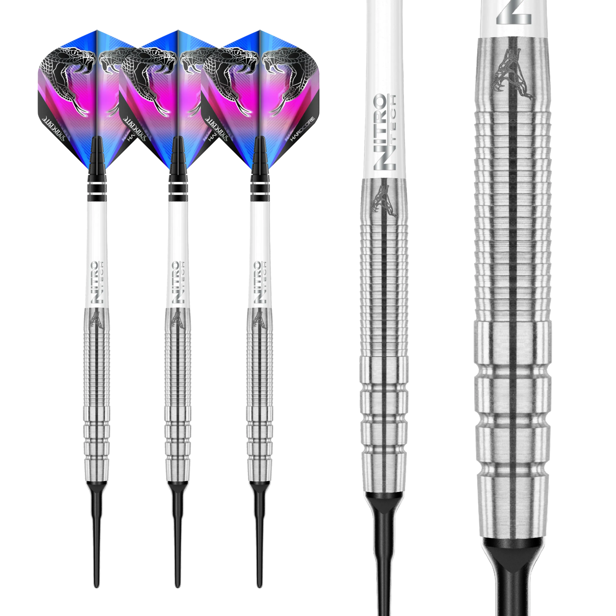 The set is equipped with white Nitrotech shafts and Snakebite flights.