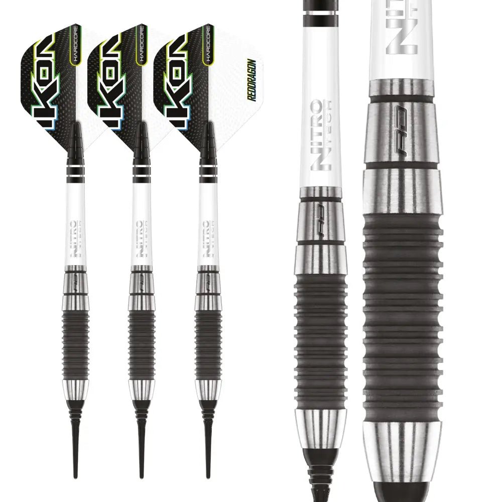 The set is equipped with white Nitrotech polycarbonate shafts (short) and Ikon Hardcore extra thick standard flights.