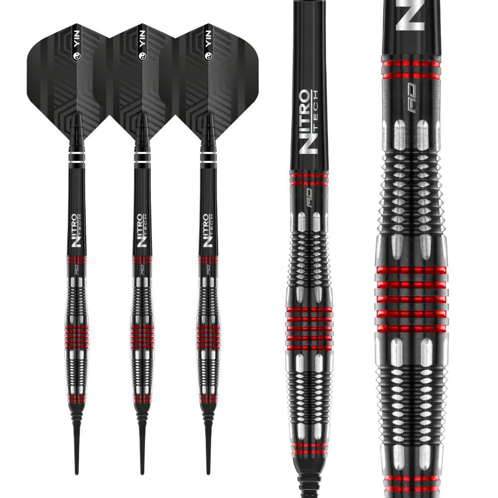 The set is equipped with black Nitrotech polycarbonate shafts (short) and RD Yin Yang double sided flights.