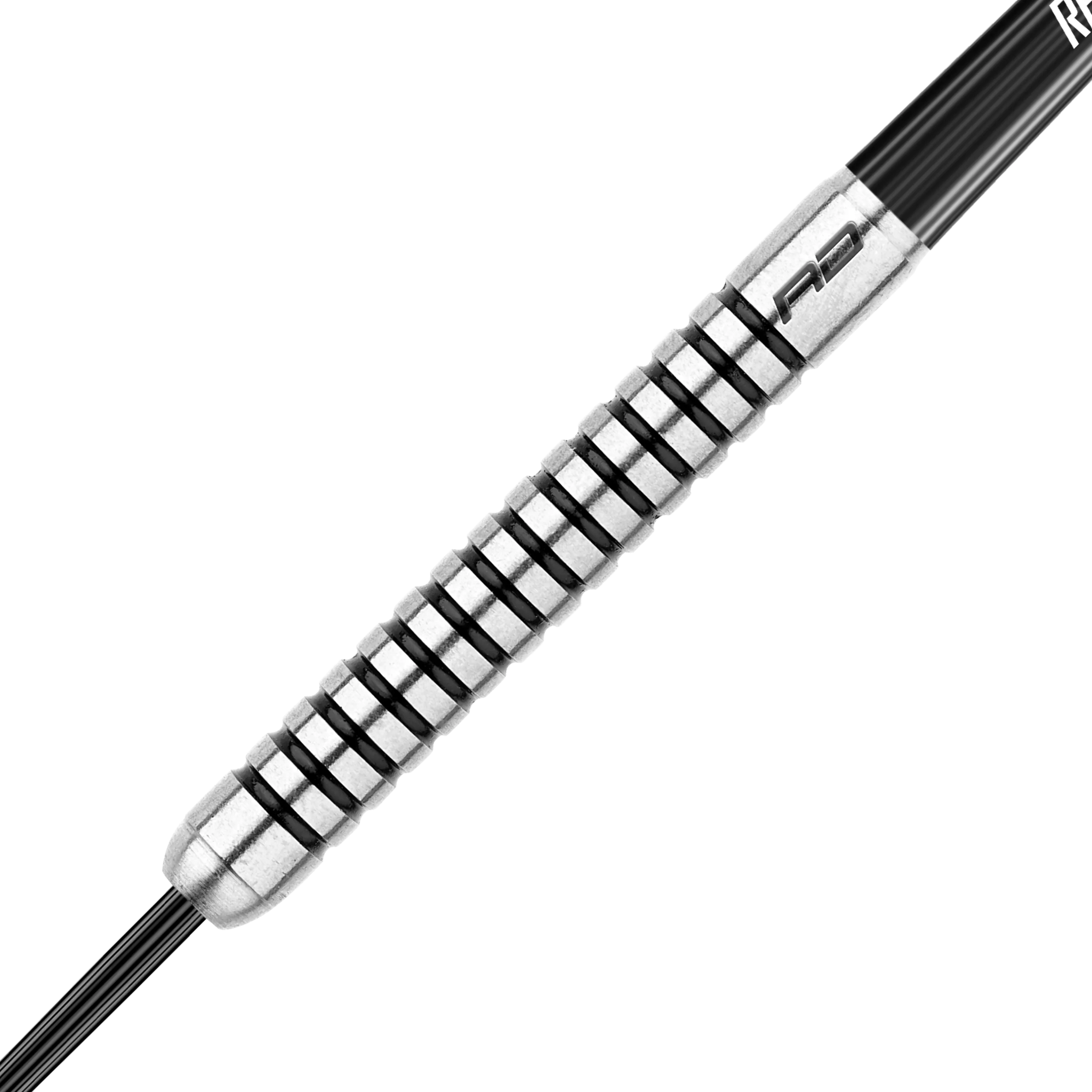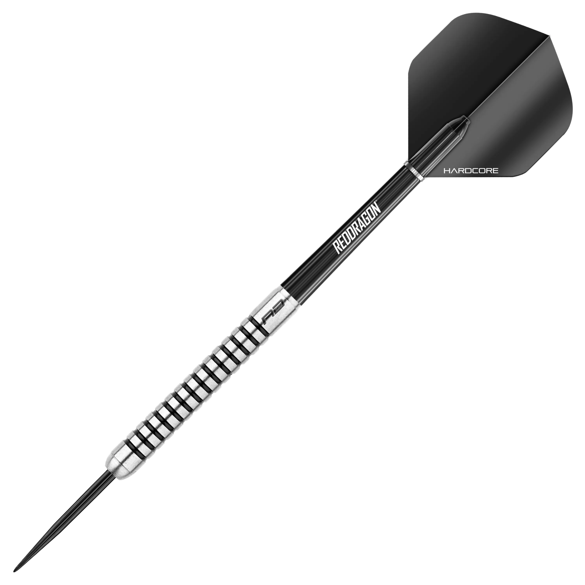 A classic dart with a parallel profile and black ring grip made from 80% tungsten.