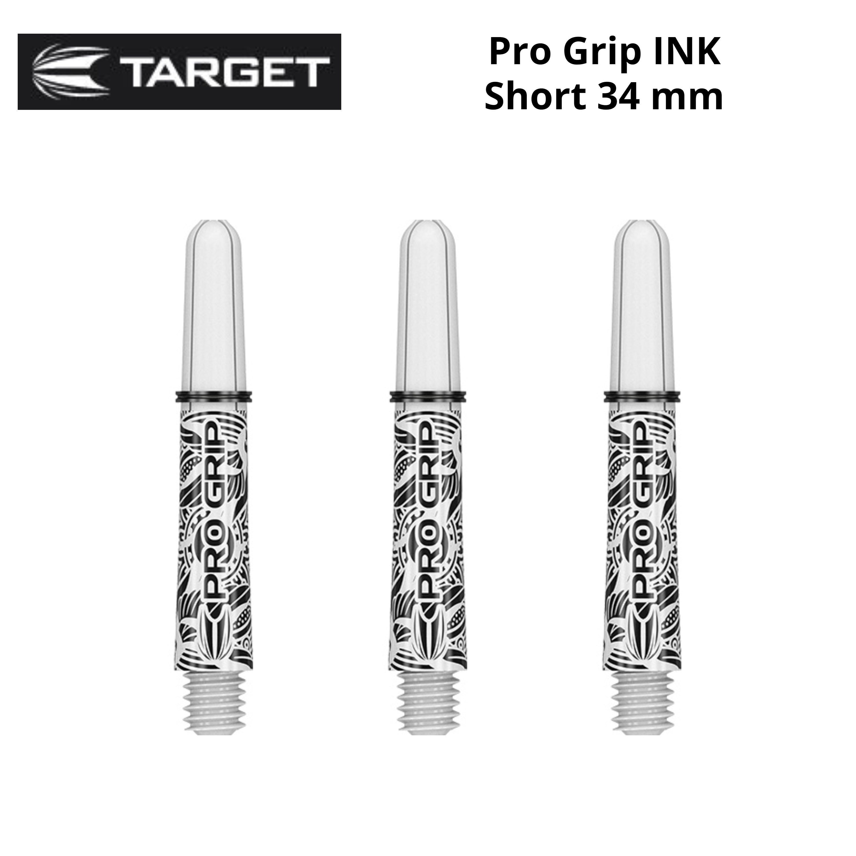 Nylon shaft with ring The Pro Grip shaft is one of the most popular dart shafts in the world. Specially shaped tip to make it easier to insert the flights into the shaft. The Pro Grip are made from a special nylon blend and are incredibly durable. The included ring ensures that the flight sits firmly in the shaft. Design variant with eye-catching ink tattoo design.