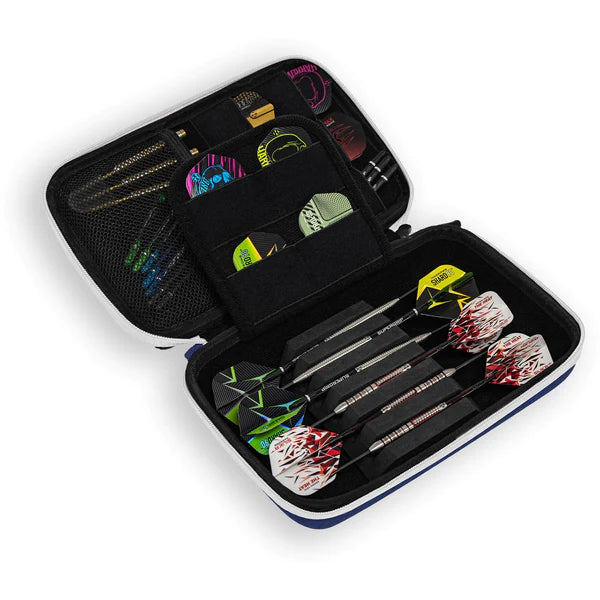 This uniquely practical and ergonomically compact bag has been designed to hold 6 fully assembled darts and offers plenty of additional storage space.