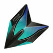 Harrows Velos Flights have the same area as normal standard flights. The more tapered flights and the longer flight shape bring more speed with high stability. The smaller wingspan allows for closer placement of the darts in the board.