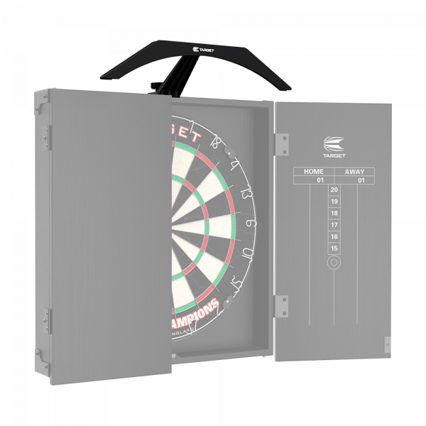 System Arc jest prosty i łatwy w montażu oraz pasuje do wszystkich szafek i projektów darta. Zapewnia równomierne oświetlenie tarczy niezależnie od warunków w pomieszczeniu i pozwala na zamknięcie drzwi szafy, gdy nie jest używana.