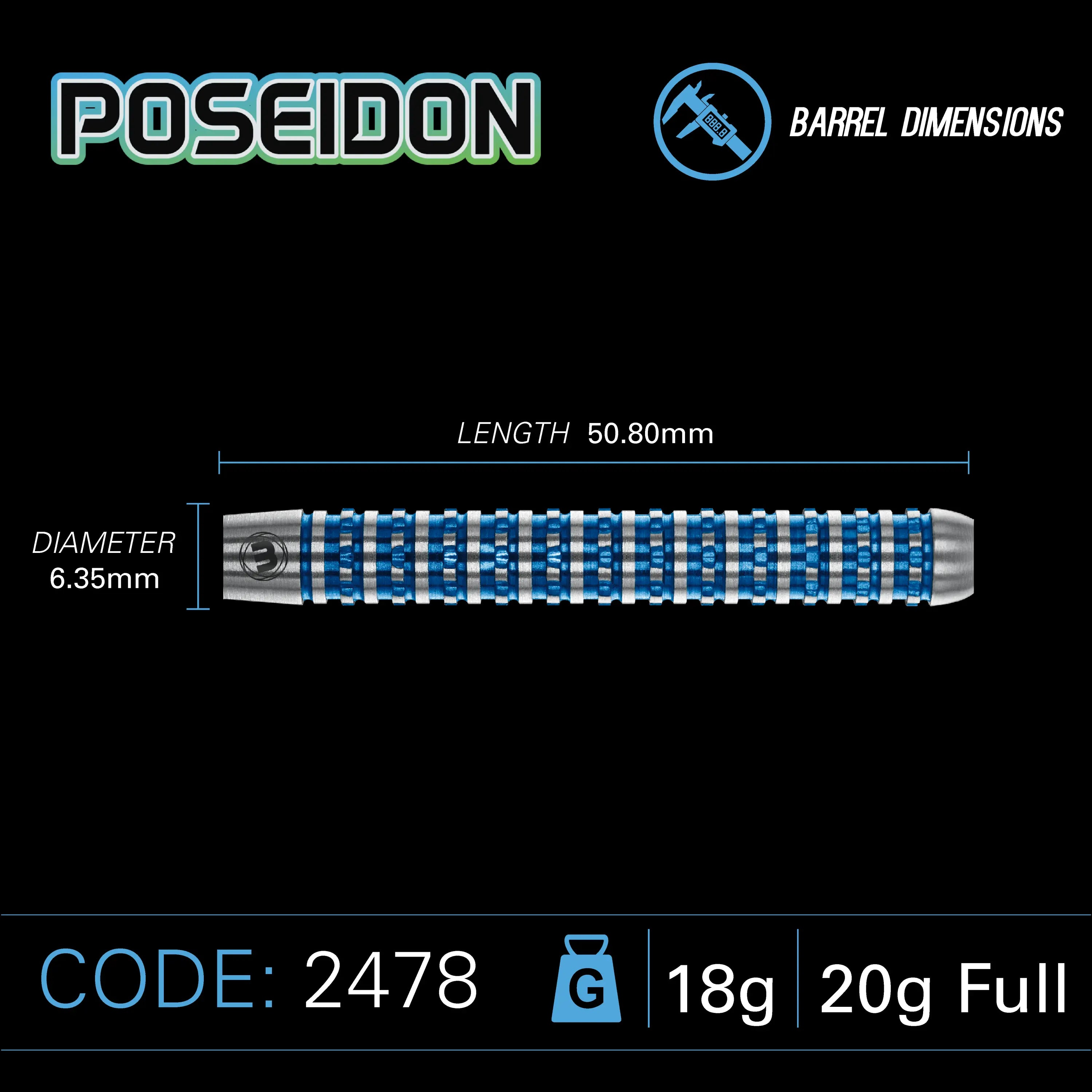 Projekt głębokiego nurkowania tworzy odważną serię, która rzuca wyzwanie konwencjom i zapewnia wydajność rzucania na poziomie wycieczki, szczególnie najlepszym graczom w grze. Potrójnie precyzyjnie wyfrezowana, zapewniająca precyzyjny i spójny chwyt, elektryczna niebieska esencja Poseidona jest pionierem nowoczesnego projektu rzutek i wolności rzucania.