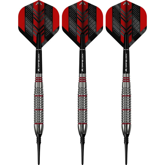 Setzen Sie neue Maßstäbe am Oche mit den Mission Rogue Darts. Diese Messingdarts haben eine silberne Beschichtung mit einem Ringgriff entlang des Barrels, der von drei rot lackierten Ringen durchsetzt ist. Der hintere Teil des Barrels ist mit rot lackierten Ringen und einem gelaserten Mission-Logo versehen. Eine glatte Front an der Vorderseite des Barrels führt zu einer schwarzen Spitze.
