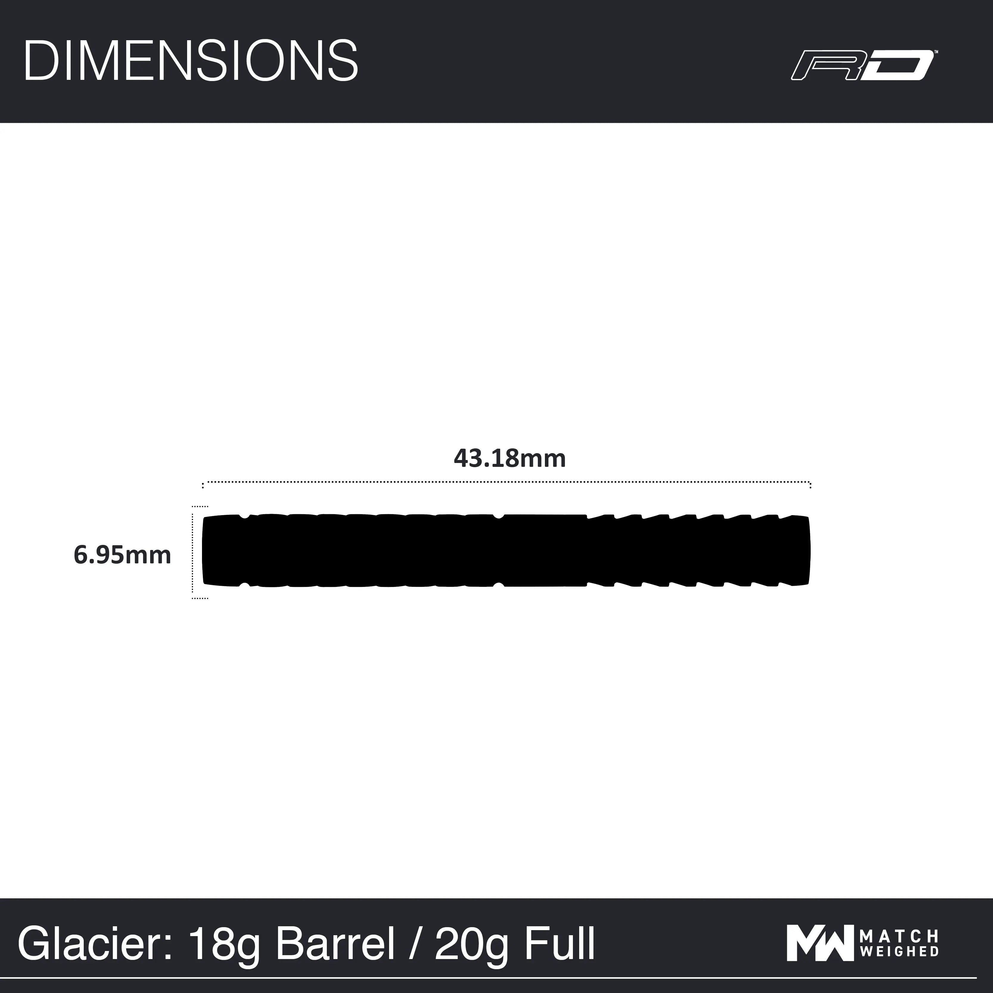 Der „Glacier“ verlängert das typische Griffmuster von Gerwyn Price über die gesamte Länge des Barrels mit reiner Iceman-Präzision. Der sportwissenschaftlich konstruierte Glacier verfügt über einen modernen, gefrästen Griff an der Rückseite. Er steht für die unerbittliche Leidenschaft des Iceman. Volle Barrel-Kontrolle, um heutigen Speilanforderungen gerecht zu werden.