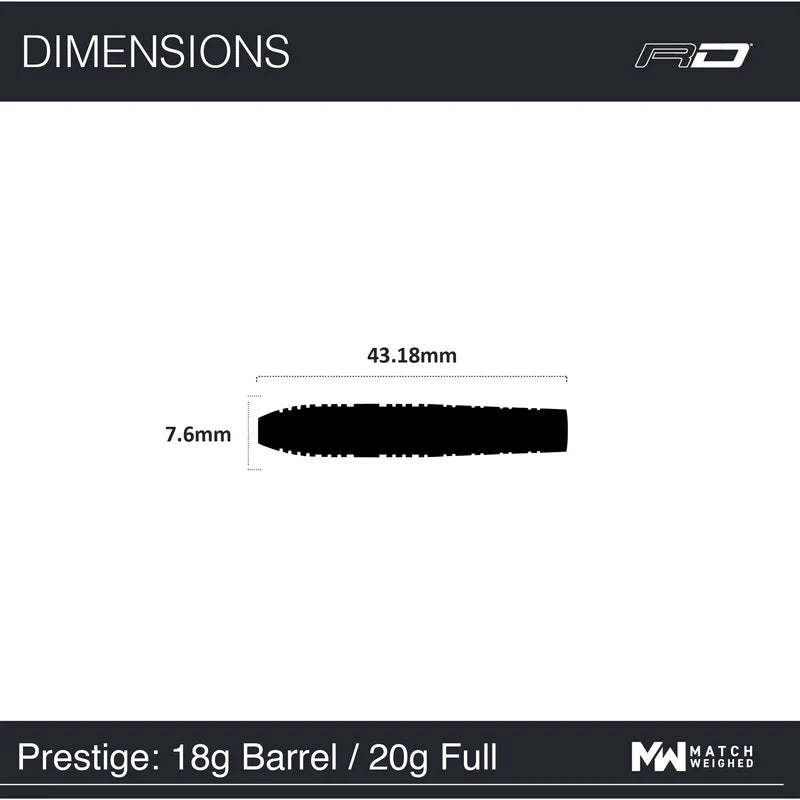 Der „Prestige“ feiert die zwölf dominantesten Monate in der Geschichte des Darts und ist eine Hommage an Luke Humphries‘ Jahr als bester Spieler der Welt. Dank der Kombination seines charakteristischen Torpedo-Barrels mit einem präzisen, schwarzen gefrästen Griff und klassischer gold#1-Gravur ermöglicht Ihnen Luke Humphries' „Prestige“, wie ein Champion zu spielen.