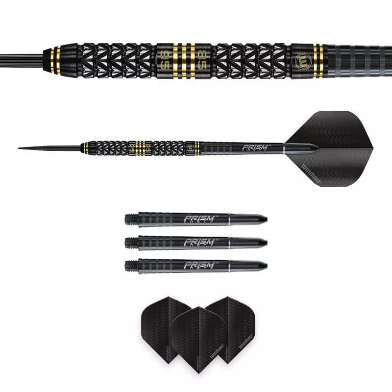Zestaw wyposażony jest w czarne wałki Winmau Prism Force Shafts i lotki Winmau Aspria.